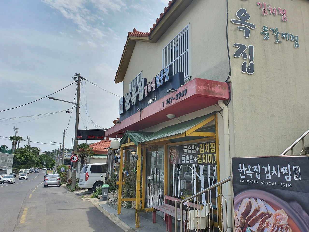 오늘 가볍게 한두 시간 걸으려고 했는데 생각보다 올레길 7코스가 길다. 다리도 아프지만 무엇보다 배가 고프다. 뭐 딱히 먹고 싶은 게 안 떠오른다. 면 종류는 최근에 너무 많이 먹어 싫고 고민하다 생각해낸 곳이 바로 '한옥집'이다. 예전에 한번 맛있게 '김치찜'을 먹었던 곳인데 그 김치 맛이 다시 먹고 싶어졌다.