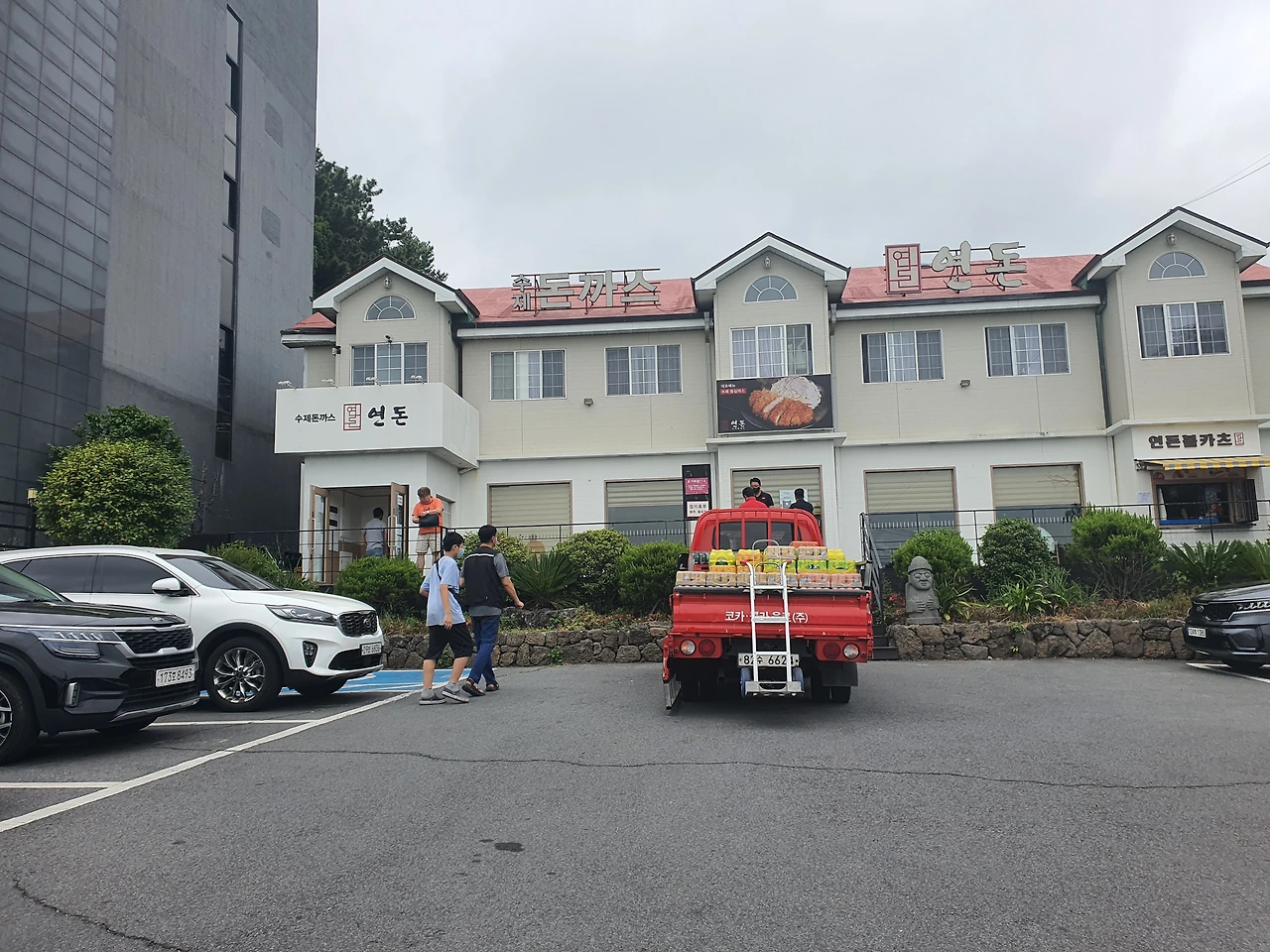 여기 연돈 주차하기가 생각보다 많이 까다롭다. 가게로 진입하는 길 입구도 좁고, 주차장은 일반 가게 주차장으로 10군데 정도 되는 게 다여서 이미 만차다. 게다가, 주변에 다른 가게가 있어 거기에 주차하기도 눈치가 보인다. 어디에 주차를 해야 하나 고민하다 할 수 없이 길가에 차를 주차하려는데 아내가 더본 호텔 앞에 주차 가능하다고 해서 다시 돌아와 겨우 주차를 했다.(헉헉헉)