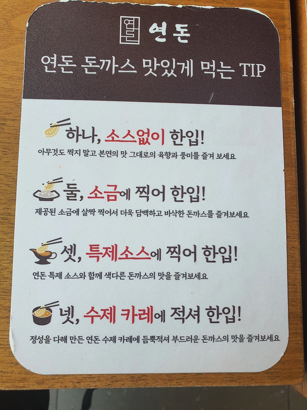그렇게 유명하다던 연돈 가게 문을 열고 발을 디디는 순간, 뭔가 엄청난 일을 하는 것 같다. 주차하느라 조금 늦게 들어왔더니 이미 홀은 만원이다. 테이블 가득 손님이 꽉꽉 차 있는데 다들 연돈 돈가스 먹을 생각에 기대 가득한 눈빛이다. '도대체 얼마나 맛있길래, 이렇게 힘들게 예약해가며 여기 오지?' 하며 나도 애타게 돈가스를 기다린다.