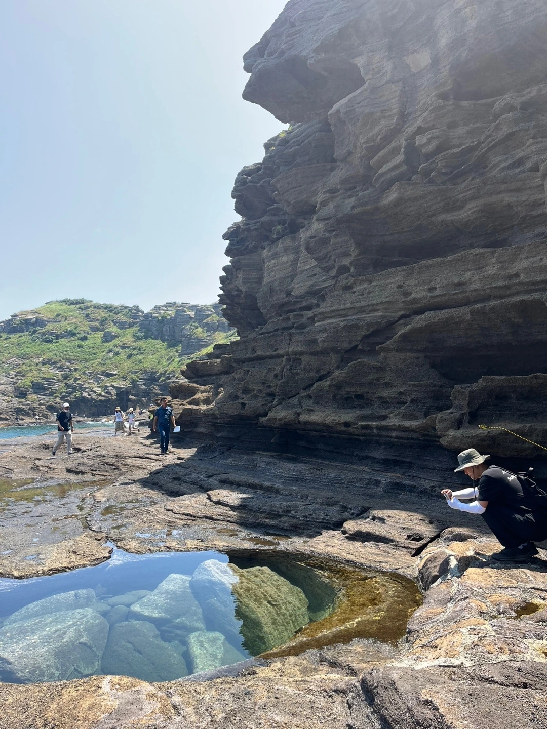 그런데 너무 오래전 일(10년 20년)이라 기억이 희미하다 못해 사라져 버린 거다. 그래서 용머리 해안 하면 '뭐 좀 좋았지.', '찐 노랑 층층 바위들이 신기했지!' 뭐 이 정도 수준이었다. 게다가, 아주 최근(작년 9월)에는 아이들과 여길 왔다가 입구에서 비가 우르르 쏟아져 입구만 구경하고 나왔던 영향도 컸다.