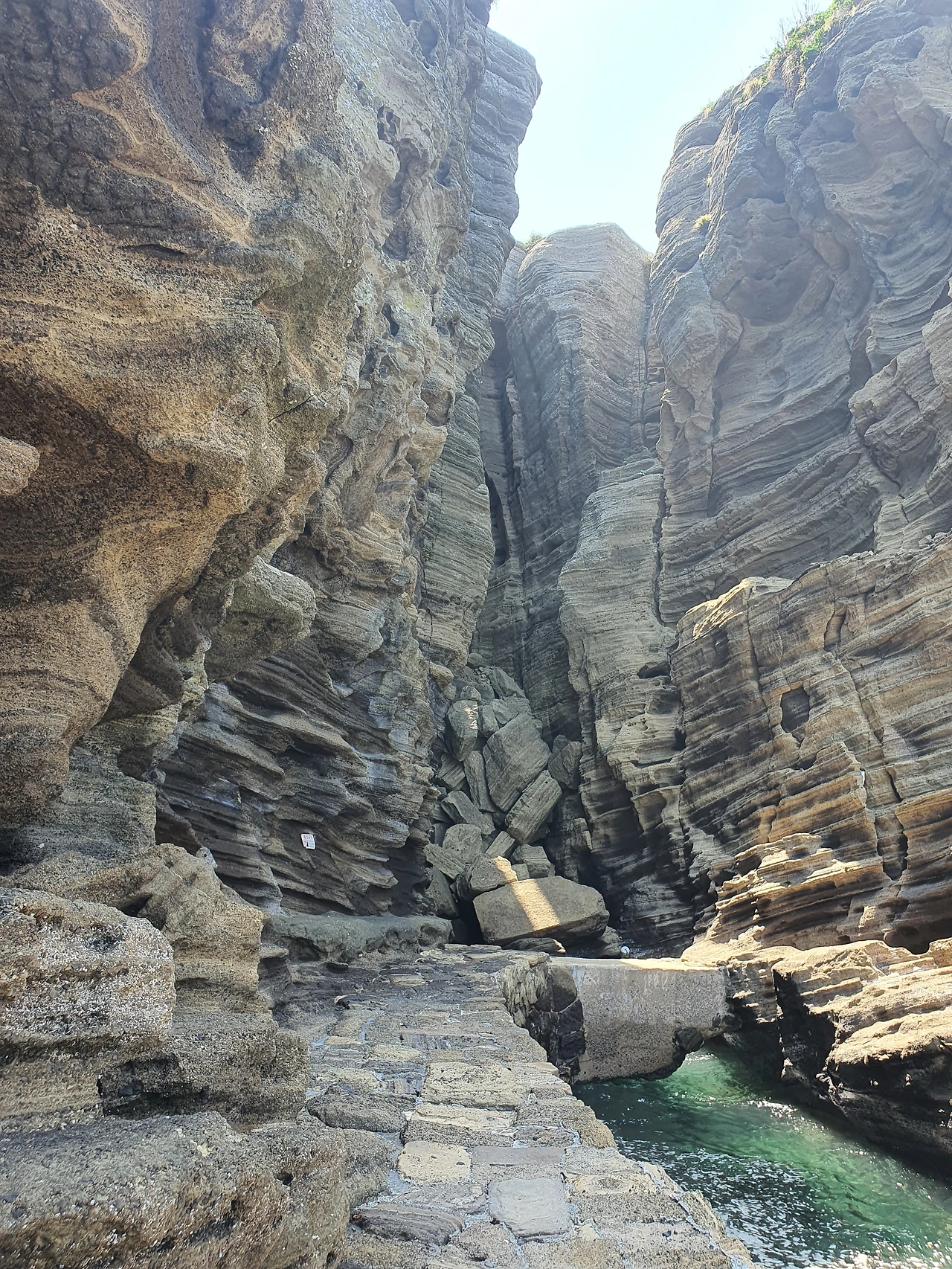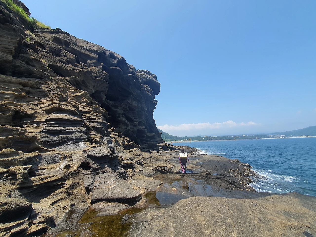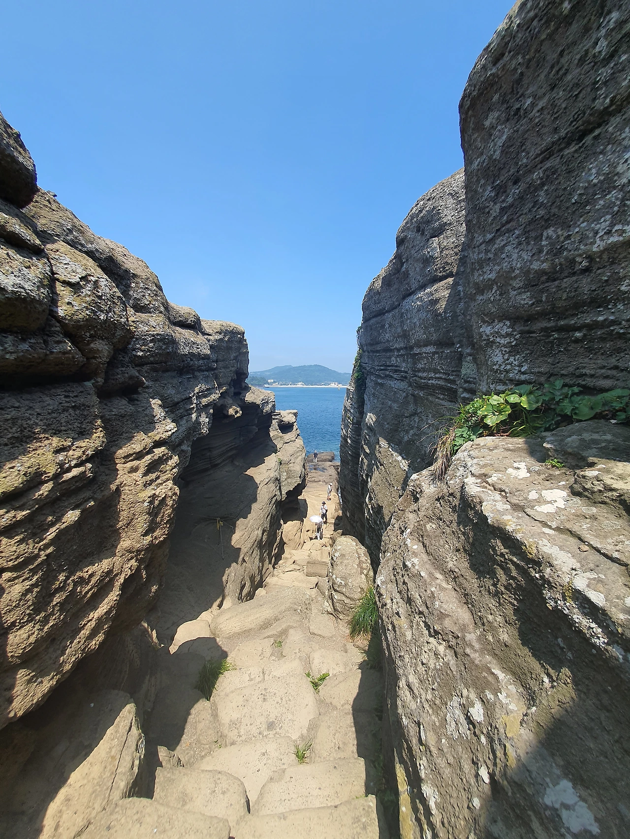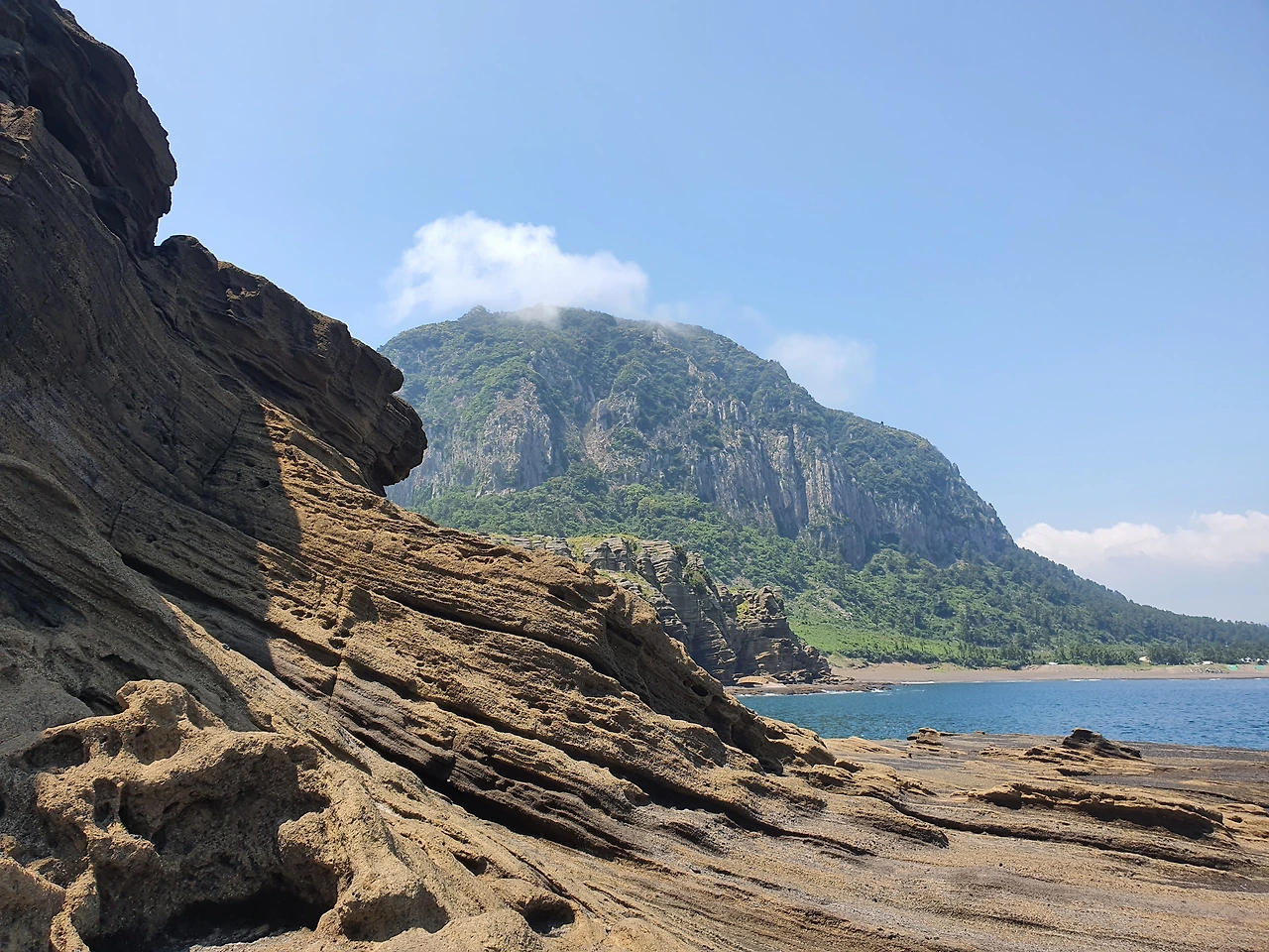 짧은 순간이었지만 강렬한 기억을 선물해 줬던 이곳, 분명 입구는 대한민국 제주도였는데 들어와 보니 외국의 유명 관광지에 온 착각을 불러일으키게 했던 이곳, 타임머신을 타고 몇 만 년 전으로 거슬러 올라가 원시 그대로의 모습을 고스란히 보여줬던 이곳, 바로 '용머리 해안'이다.