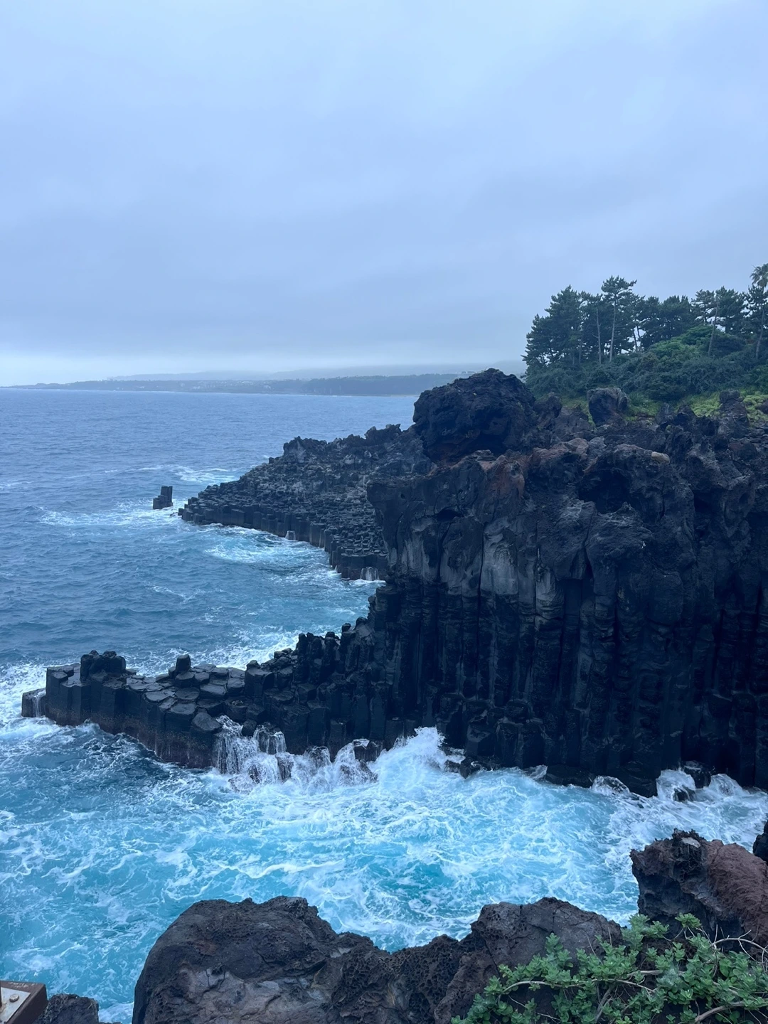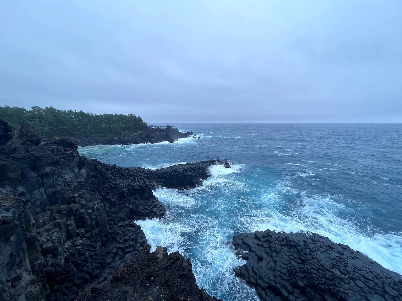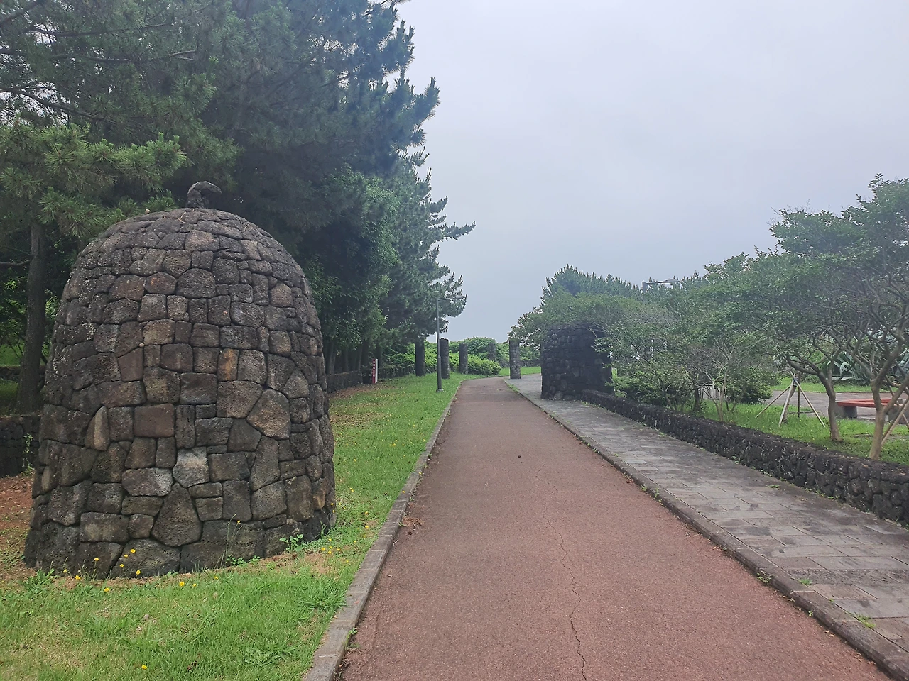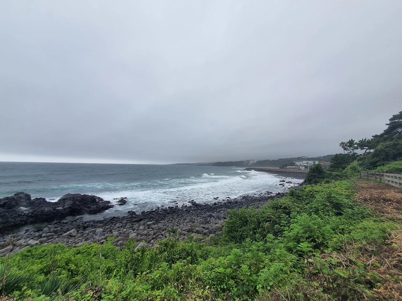 '주상절리 앞에 왜 대포가 붙었지?'궁금했다. 걸으니 여기 동네가 대포동이다. '아 그래서 대포가 붙은 거구나!'바로 이해가 된다. 장마라 습한 건 별로지만 반대로 해가 없으니 걷기 좋다. 구름이 해를 가려주고 시원한 바람도 중간중간 불어주고 내리막길이니 발걸음이 가볍다.