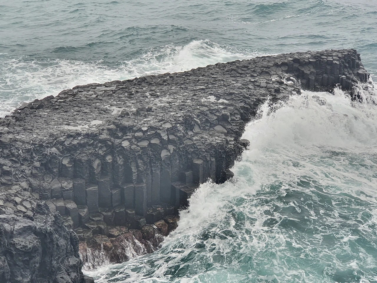 자연이 만들어낸 작품에 한동안 넋을 잃고 바라만 보았다. 검정 네모 마시멜로들이 바닷가에 겹겹이 쌓여있는데 보기만 해도 배가 불렀다. 게다가 파도가 어찌나 사납던지 검정 네모 마시멜로들을 다 녹일 기세로 팡팡 철석 철석 때린다. 하얀 물보라와 검정 바위의 오묘함에 나도 모르게 빨려 들고 있었다.