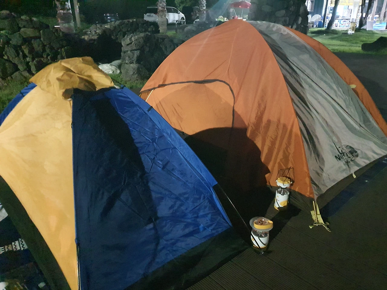 압축 매트를 깔고, 침낭을 펼치고 랜턴 2개를 켜니 잘 집 두 개가 완성되었다. 잘 집이 완성되니 마음이 무지 평화롭다. 여기서 잘 생각을 하니 가슴이 두근두근 거린다.