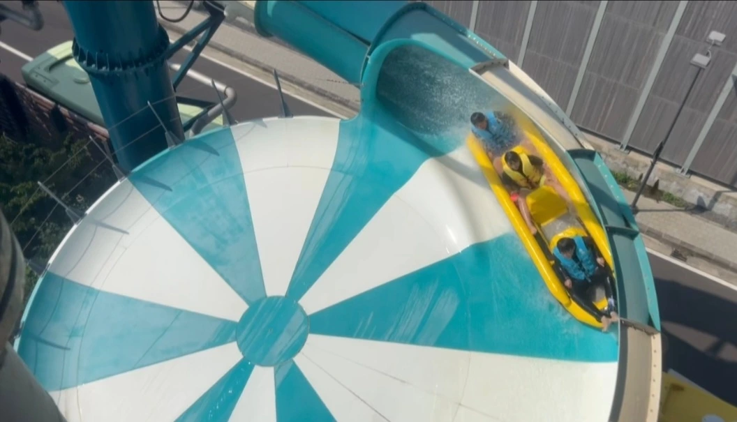 그 소리와 함께 4명이 앉은 튜브가 뱅글 돌면서 회전하기 시작하는데 조금 어지럽긴 하는데 탈만하다. 그런데 몸무게가 많이 나가는 튜브라 가속도가 엄청 붙는다. 갑자기 하늘에서 땅으로 툭 떨어진다. 물 바이킹이다. 으악 하고 소리를 질러야 하는데 너무 무서워 소리가 입 밖으로 나오지 않는다. 심장이 밖으로 튀어나와 따로 놀고 있는 것 같다.