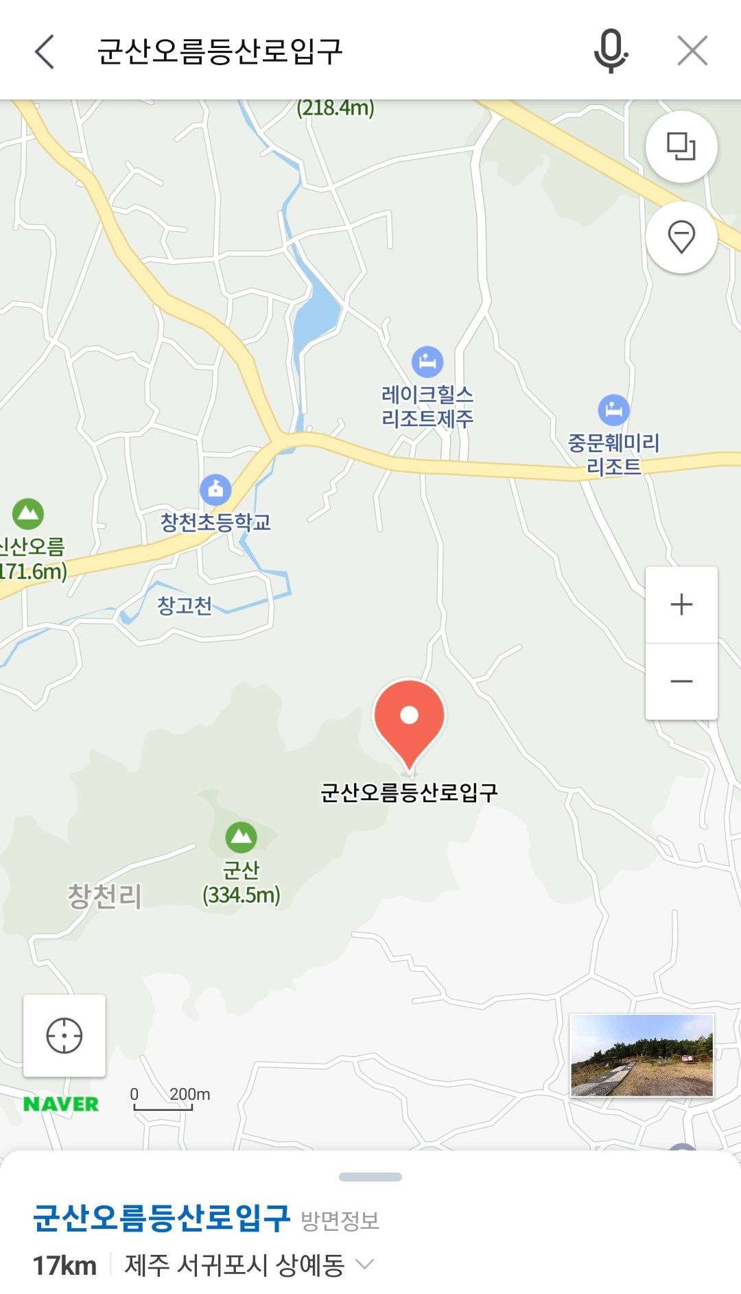 차로 가는 것보단 '예래동 군산 입구'(군산오름 등산로 입구)로 가 보라는 '춤추는 나뭇가지'작가님의 댓글에 이번엔 그 길로 찾아간다. 네비를 찍었는데 안 나와서 네이버 지도를 찾아 찾아간다.