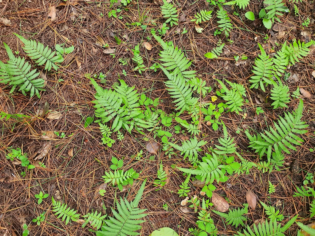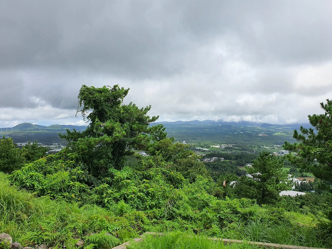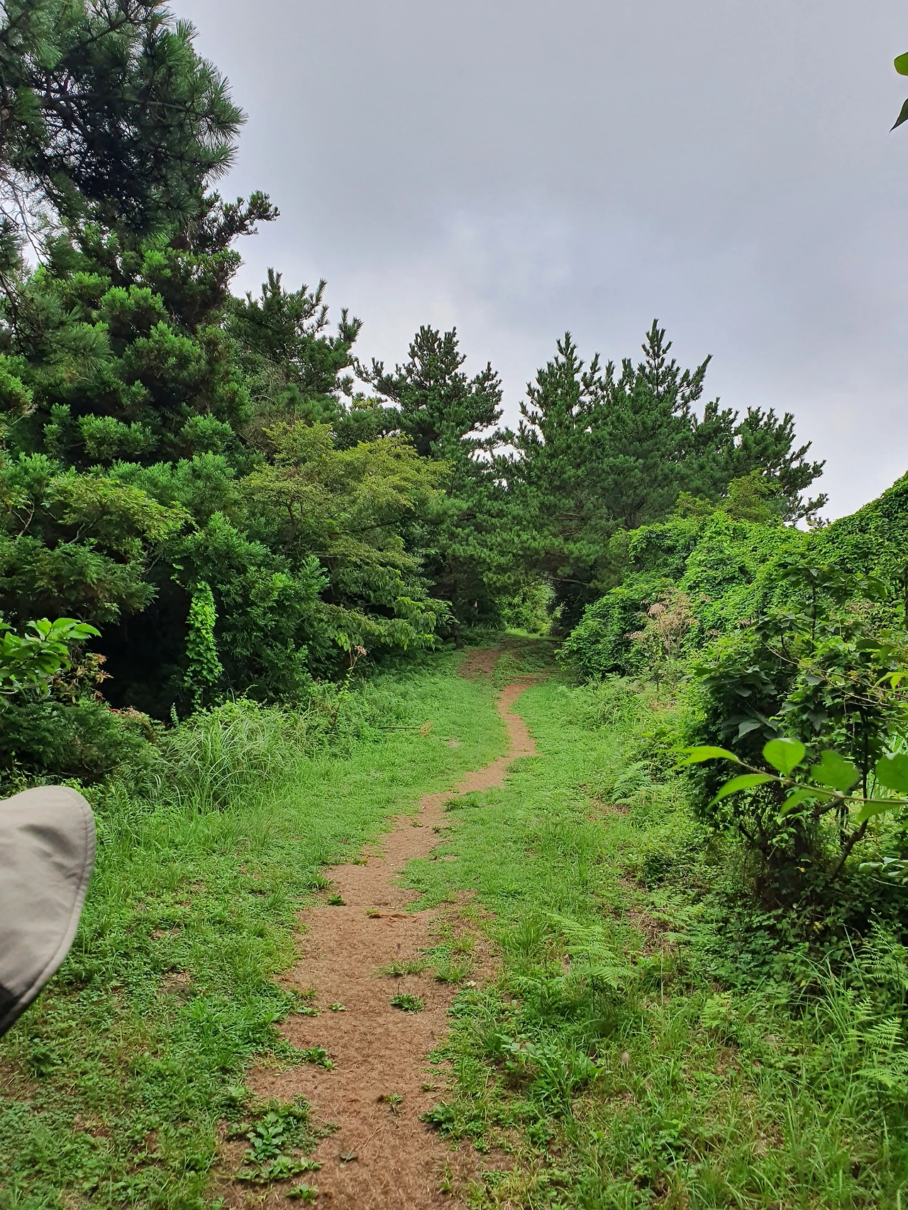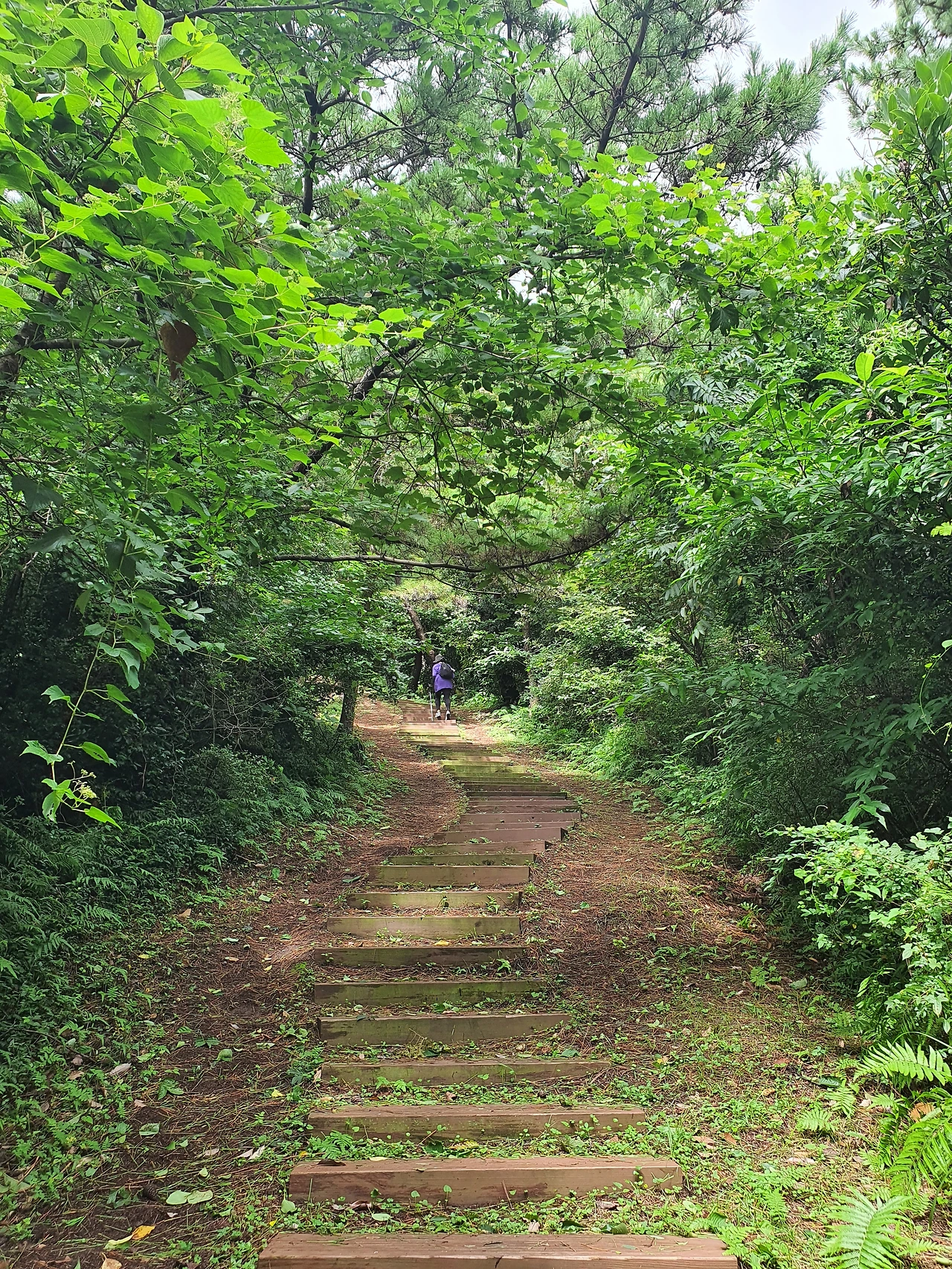 시작부터 오르막 계단이다. 챙겨간 스틱이 도움이 된다. 양치식물의 초록 초록함이 계단길을 즐겁게 한다. 계단길을 한 번 힘겹게 오르니 제법 완만한 길이 나온다. 나무 사이로 오름들이 시원하게 펼쳐져있다.