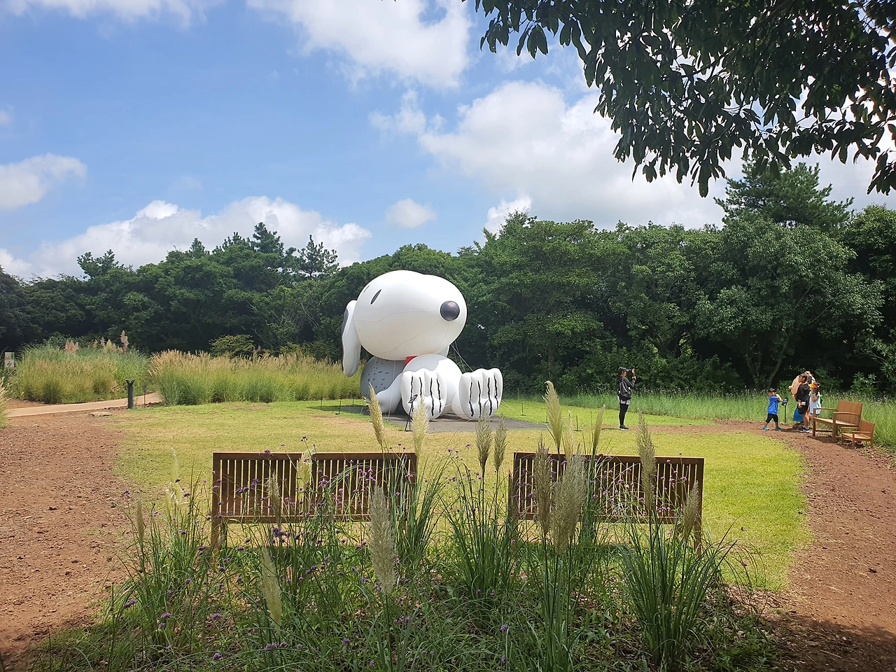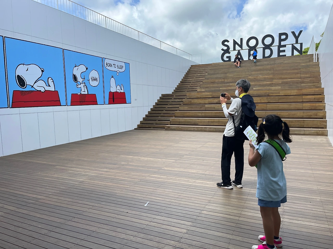 왜 여기가 '스누피 박물관'이 아니라 '스누피 가든'인지 밖을 나오니 바로 알겠다. 정원이 10개 정도 아기자기하게 주제별로 조성되어있는데 사진 찍기 참 좋다. 연인에 가족에 어르신들까지 한가로운 오후 한때를 보내고 있다. 귀여운 스누피 캐릭터들이 곳곳에서 사람들을 불러 모은다.