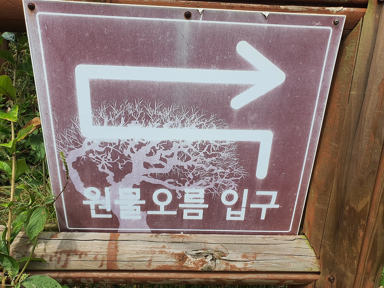 동광 육거리 근처에 있다. 오름 근처에 충혼탑이 있어 주차장이 아주 넓다. 주차 걱정은 안 해도 된다. 원물 오름 가는 길이라는 이정표가 보인다. 오른쪽으로 정자 하나와 연못이 하나 보인다. 빨간색 화살표를 따라가면 오름 입구가 보인다. 그런데 리을자 입구 끝에 철조망이 걸려 있어 몸을 숙여 아래로 통과해야 한다. 말이 못 나가게 해 놓은 철조망이라고 하니 걱정을 안 해도 된다.