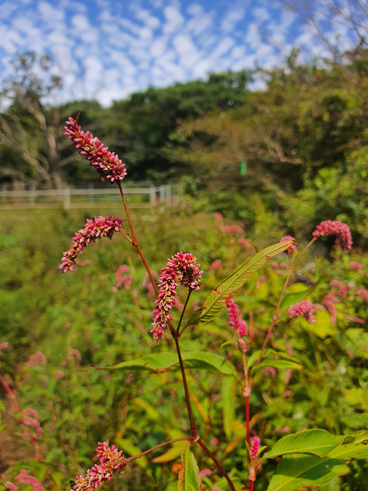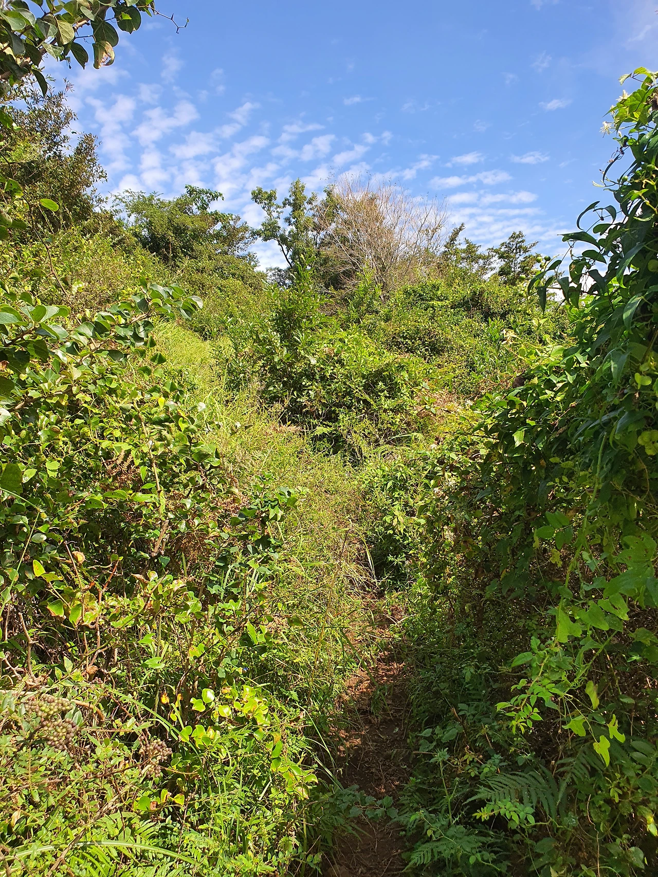 일반적인 산길이다. 한여름에 자란 풀들이 길을 차지하고 있다. 따끔따끔한 가시풀도 많으니 조심하길 바란다. 개인적으로 잘 닦인 데크길이나 야자수매트 깔린 길을 좋아하는데 알려지지 않은 오름이라 어쩔 수 없다. 한 걸음 한 걸을 디딜때마나 메뚜기가 놀라 '떼떼 떼'하며 날아간다. 이리 폴짝 저리 폴짝이다. 이름 모를 들꽃도 다양하다. 노랑 보라 분홍 하양 하나같이 안 이쁜 꽃이 없다. 호랑나비 노랑나비들이 꿀을 먹느라 바쁘다. 노랑나비도 자세히 보니 나비 날개에 검은 줄이 보인다.