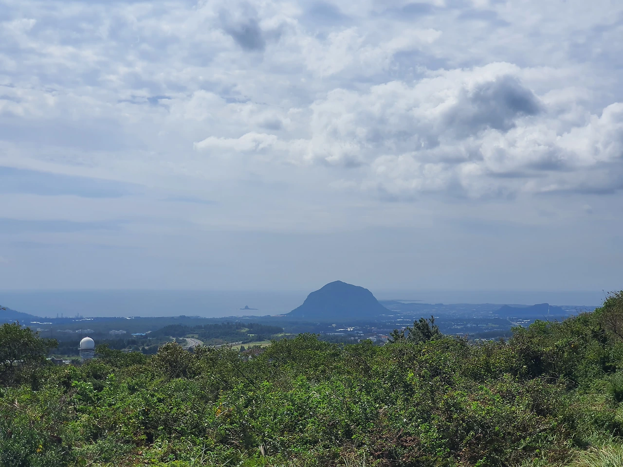 360도 제주 남쪽 뷰가 다 들어온다. 한라산부터 시작해 군산 산방산 단산 모슬봉 그리고 이름 모를 오름들이 싹 다 한눈에 시원하게 다 들어온다. 우와, 우와 소리가 입에서 연속해서 나온다.