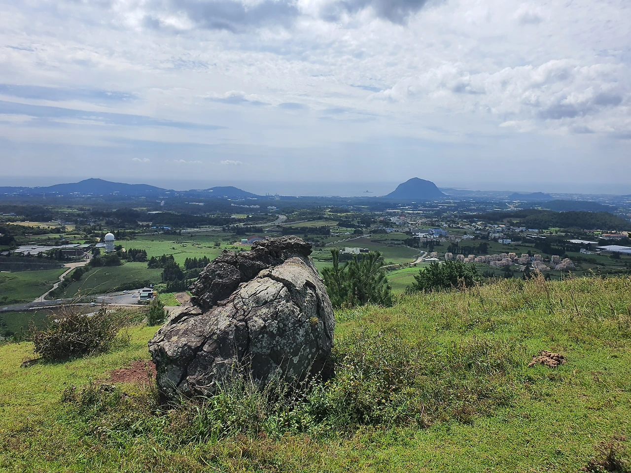 '우와' 입이 다물어지지가 않는다. 정상에 오르지도 않았는데 주변 시야가 한눈에 들어온다. 이런 감격을 줄 줄이야. 솔개 한 마리가 오름 정상 바람을 타고 곡예비행을 요리조리한다. 내 인기척을 들었는지 쉥하니 다른 곳으로 날아가 버린다. 그러고 보니 제주의 매력은 탁 트인 하늘을 보이는 시야다. 조금만 벗어나면 도시처럼 조각하늘이 없다. 높은 건물이 없어 하늘이 통째로 보인다. 오롯이 하늘 전체를 보는 이 자유로움. 그 자체가 커다란 선물이다.