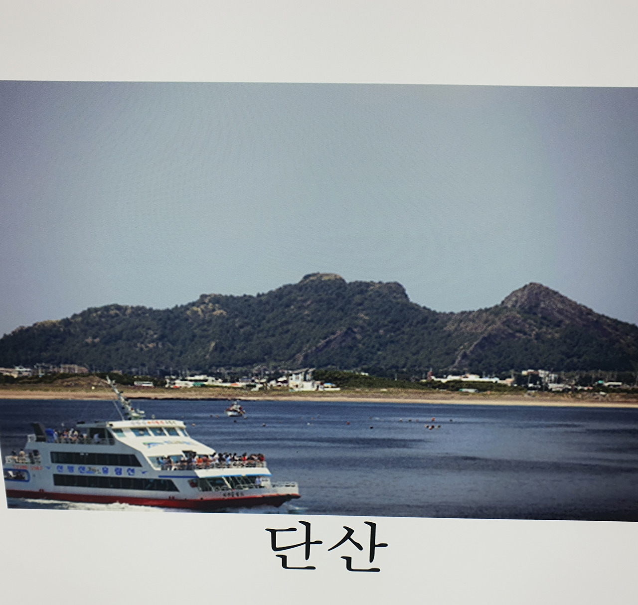 하루는 가족들과 산방산 탄산온천을 갔는데,입구에 대정읍 근처의 관광지가 사진으로 짝 펼쳐져있다. 산방산, 용머리 해안, 알뜨르 광장 등등. 여기 가 봤네, 하며 쭉 보는데 내가 궁금했던 목침 모양의 산이 보였다.