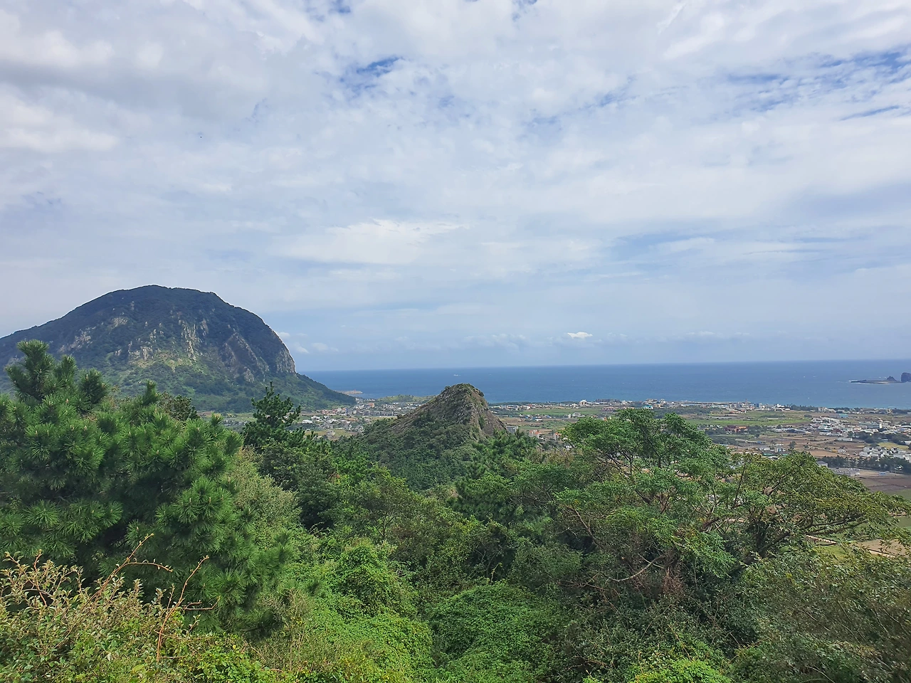 오르는데 20분, 정상 풍경 감상하는 데 10분, 내려오는데 20분. 총 50분 정도가 걸렸는 것 같다. 산방산 근처에 온다면 여기 박쥐 날개 모양의 단산을 꼭 오기 바란다. 제주 남쪽 풍경이 한눈에 쏵 다 들어온다. 말이 필요 없다. 최고다.