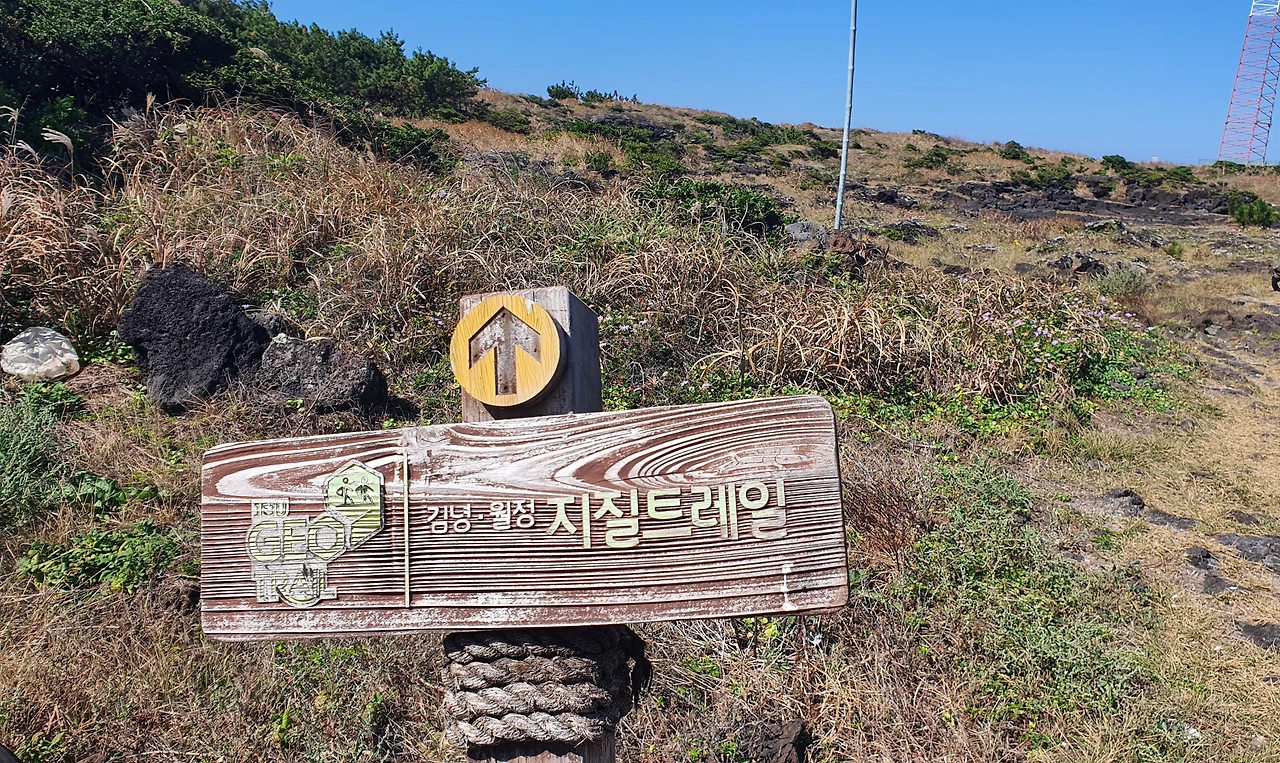 김녕, 월정 지질트레일이라는 이정표가 보인다. by도도쌤