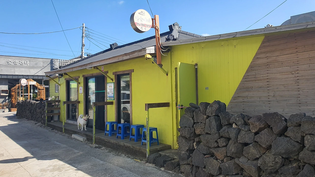 2시간을 걸었더니 다리도 아프고 배에서 꼬르륵 소리가 난다. 출발하기 전에 검색해 놓았던 식당을 아내도 좋다며 가자고 한다. 식당 근처로 가는데 곽지해수욕장 분위기가 많이 바뀌었다. 높은 건물도 보이고 식당이 많이 생겼으며 백사장까지 더 넓어진 느낌이다. 드디어 오늘의 밥집 도착. 식당 앞에 멍멍이 한 마리가 있는데 무서웠지만 용기 내어 들어간다. 가게 이름은 '임순이네 밥집'이다.