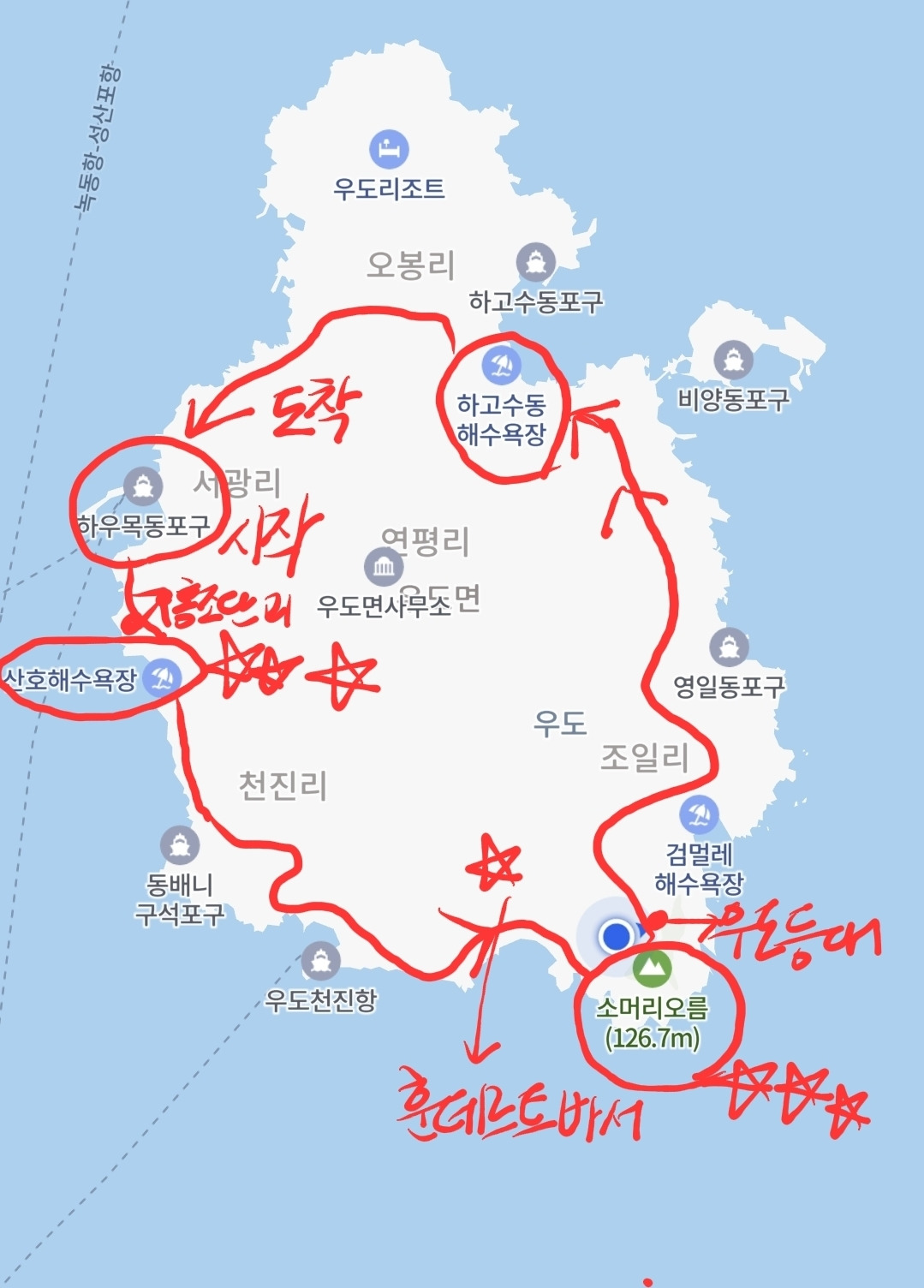 짧지만 긴 우도 여행이 마무리되었다. 아내가 그런다.