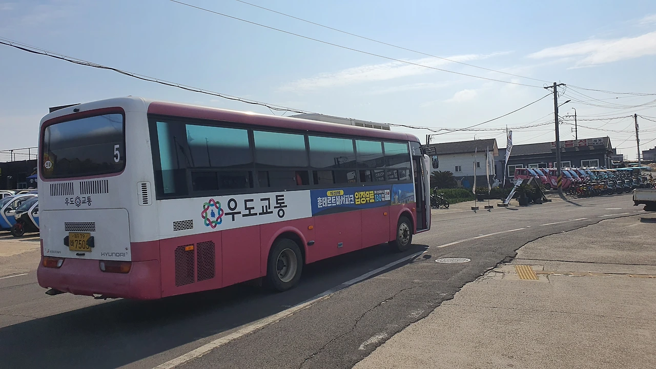 더구나, 여기 우도 외곽 도로에는 버스까지 다닌다. 그 큰 버스들이 도로 한가운데를 차지하고 씽씽씽 무서운 속도로 다니는데 걸어 다니기가 무섭다. 순간, 우도길이 전기자동차, 전기오토바이, 전기자전거 등 온갖 빠르게 움직이는 것들 위한 장소이지 걸어 다니는 사람들에게는 조금 불편하고 낯선 장소로 느껴졌다.