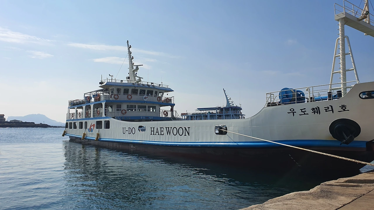 10월의 마지막 주 금요일, 평일인데도 우도 가는 배 3층 의자엔 사람이 꽉 찼다. 연인들, 가족들, 어르신들, 너 나 할 것 없이 모두 여행 가는 설렘에 연신 웃음과 대화가 끊이지 않는다. 배 위에 가만히 앉아 있으니 바닷바람이 제법 차다. 얼른 가방 속 바람막이를 꺼내 입으니 한결 낫다.