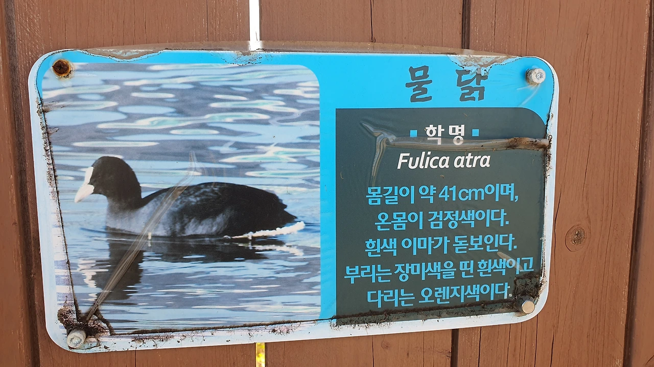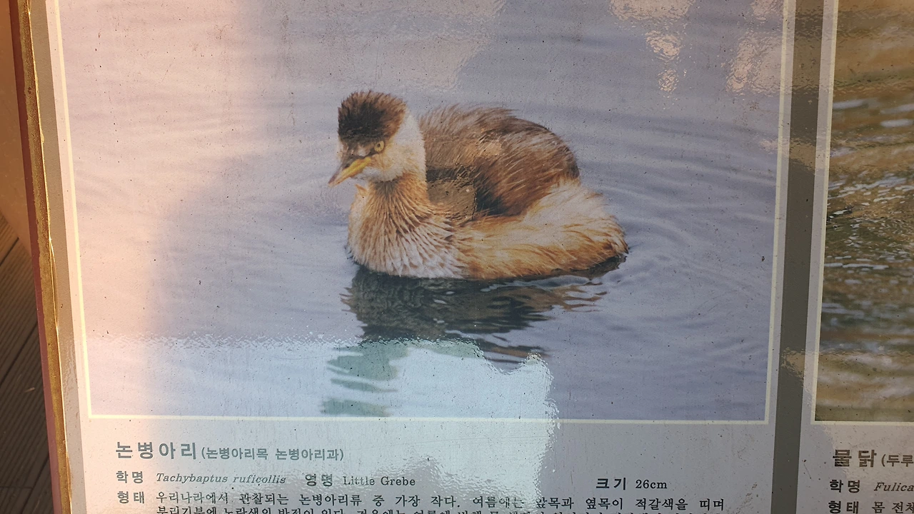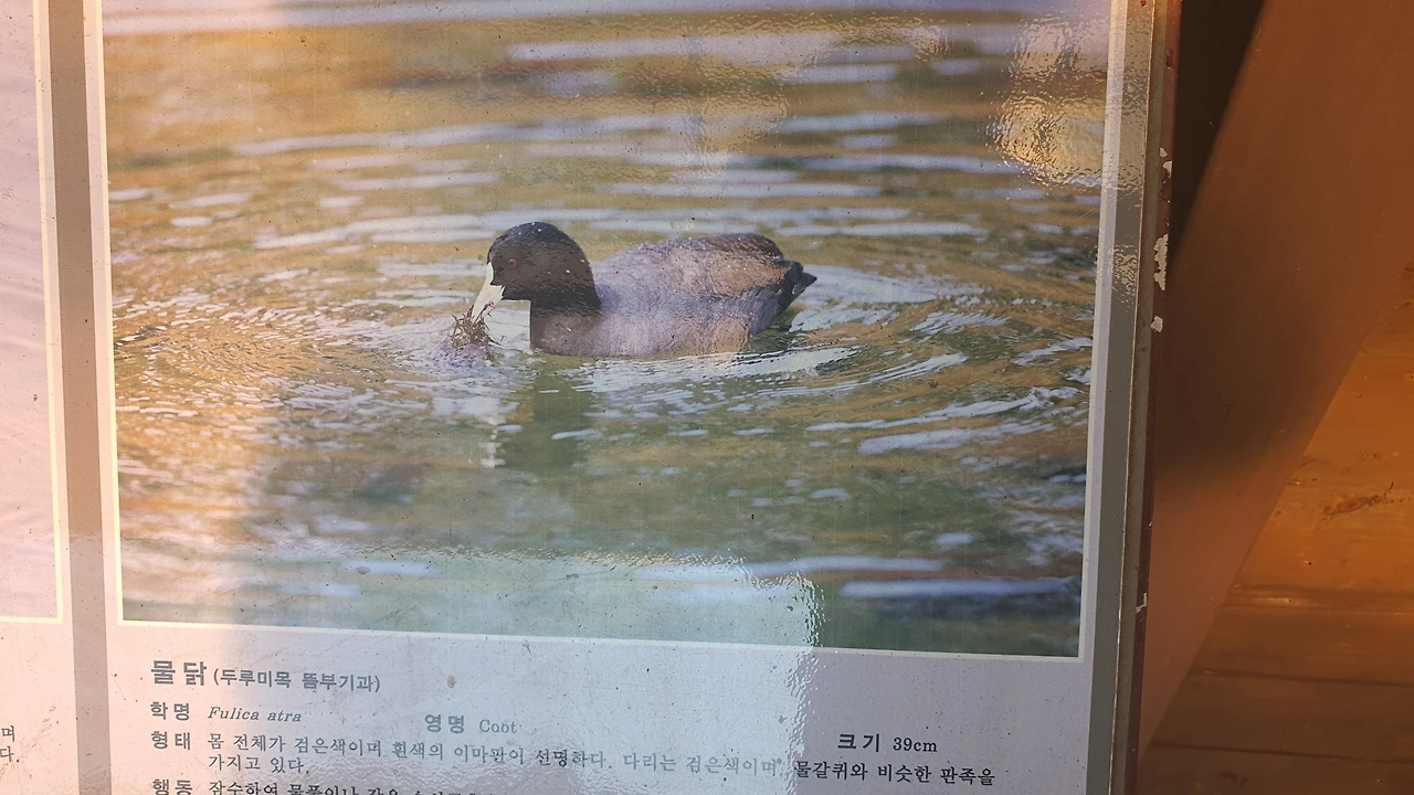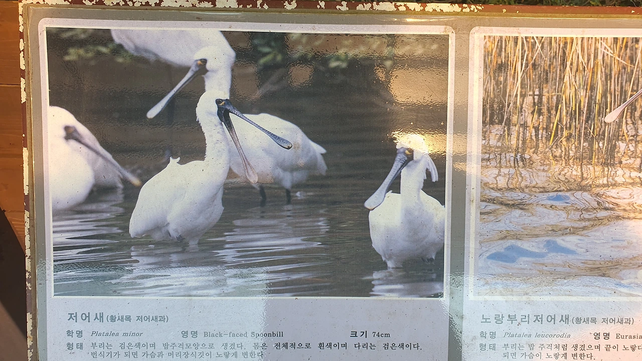 친구가 새를 직접 관찰하는 동안, 나는 여기 부스에서 직접 정성 들여 촬영한 새 사진을 쭈욱 훑어본다. 헷갈리는 새 이름들이 많았는데 정리가 확 된다. 부산 온천천에서 자주 봤던 '왜가리', 밥주걱같이 생긴 부리로 모래를 저어서 먹이를 먹는 '저어새', 머리를 닭처럼 앞뒤로 계속 왔다 갔다 움직이는 까만 '물닭', 최근에 친구랑 바다에 통발 설치하러 갔다가 물속으로 급하게 잠수하는 '논병아리'... 다양한 새들을 선명한 사진과 설명으로 보니 확실히 새에 대해 정리가 된다.