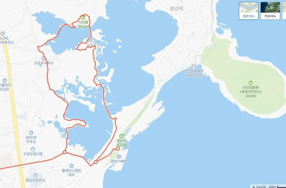 지도에서 보다시피, 빨간색 선으로 한국지도 거꾸로 된 모양으로 쭉 길이 이어져있다. 성산 쪽 길을 갈 때마다 여기 복잡한 해안선을 따라 여유 있게 걷고 싶었는데 참 잘 됐다 싶었다.