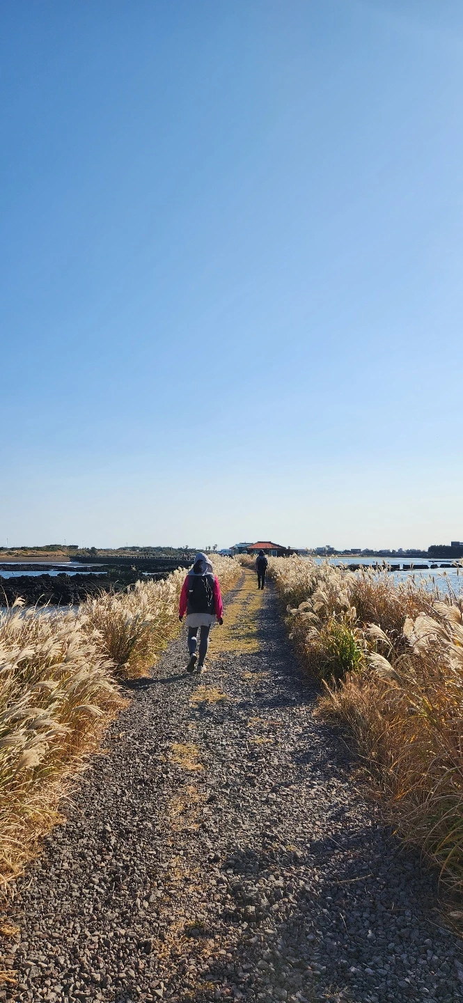 처음 걸었던 장소로 돌아가는 길에 억새가 양옆에서 박수를 쳐준다. 그게 뭐라고 지친 발걸음이 경쾌해진다. 아름다웠던 제주 올레길 2코스 해안길 탐험이었다.