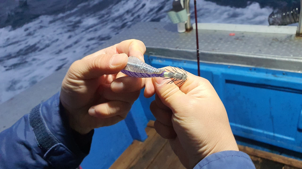 정말이지 딱 94라는 숫자가 보이니 줄이 딱 멈춘다. 바닥을 찍었다. 서귀포 앞바다가 그렇게나 깊은지 처음 알았다. 그리고, 갑오징어를 잡기 위해 바닥까지 줄을 내려야 하는지도 처음 알았다. 그러면 이제 갑오징어를 어떻게 잡는다는 것인가? 설명은 해 주신다.