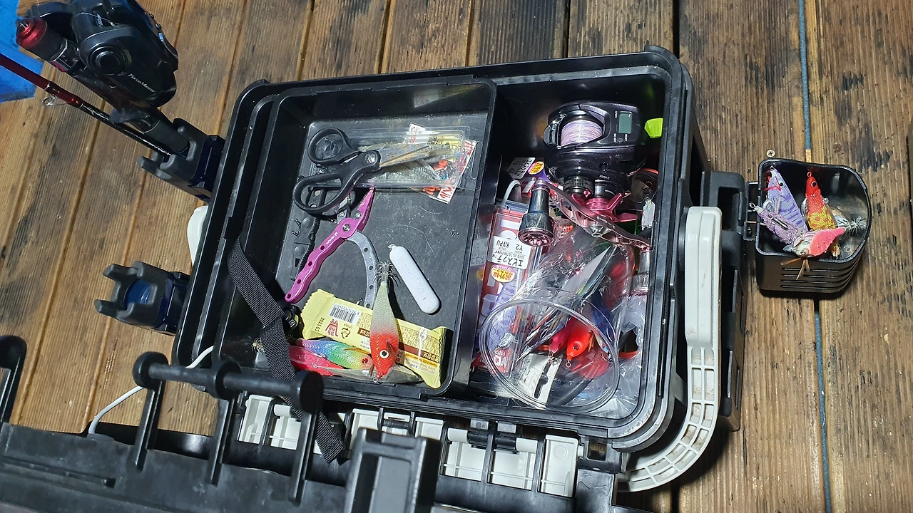 오징어가 많이 안 잡혀 다른 장소로 간다고 한다. 릴을 감는데 뭔가 걸린 것 같은 느낌이 든다.