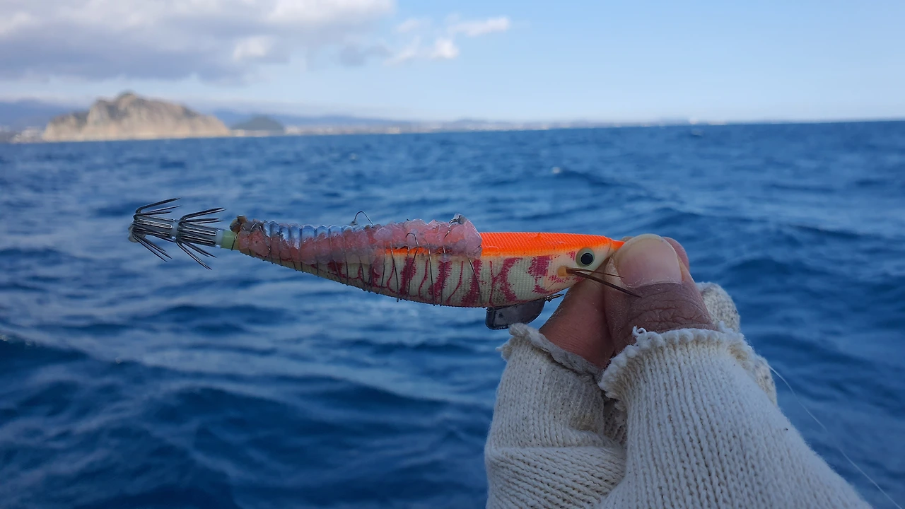 역시 J아버님은 고수였다. 난 초반에 몇 마리 잡은 게 다였지만 J아버님은 후반이 강하시다. "히트!" 하시면서 전동릴 소리가 징징징 거린다. "잡았어요?"라고 내가 물으니 "네!" 하신다. 그렇게 마지막까지 "삐삐"소리와 함께 버저비터를 날린다. 릴끝에 갑오징어가 매달려 있었다.
