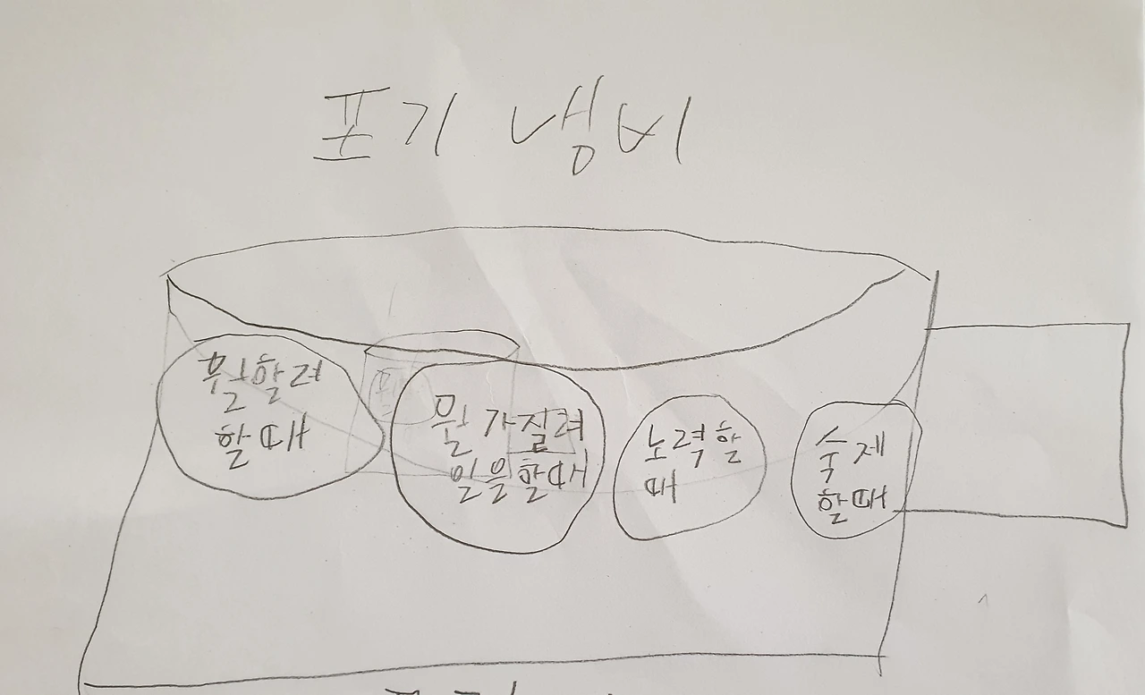 아이들 앞에서 솔직하게 내 단점 얘기를 했더니 아이들도 솔직하게 자신의 단점을 말해줬다. 단점 이야기를 다 같이 하니 희한하게 기분이 상쾌해졌다. 단점은 숨기고 외면해야 할 것이 아니라 남에게 이야기하고 그 단점을 고치기 위해 생각해 보는 시간이 중요했었다. 우리 반 아이들 모두 나처럼 자신들의 단점을 진지하게 생각해 보며 '단점 냄비'를 하나씩 그려나갔다.