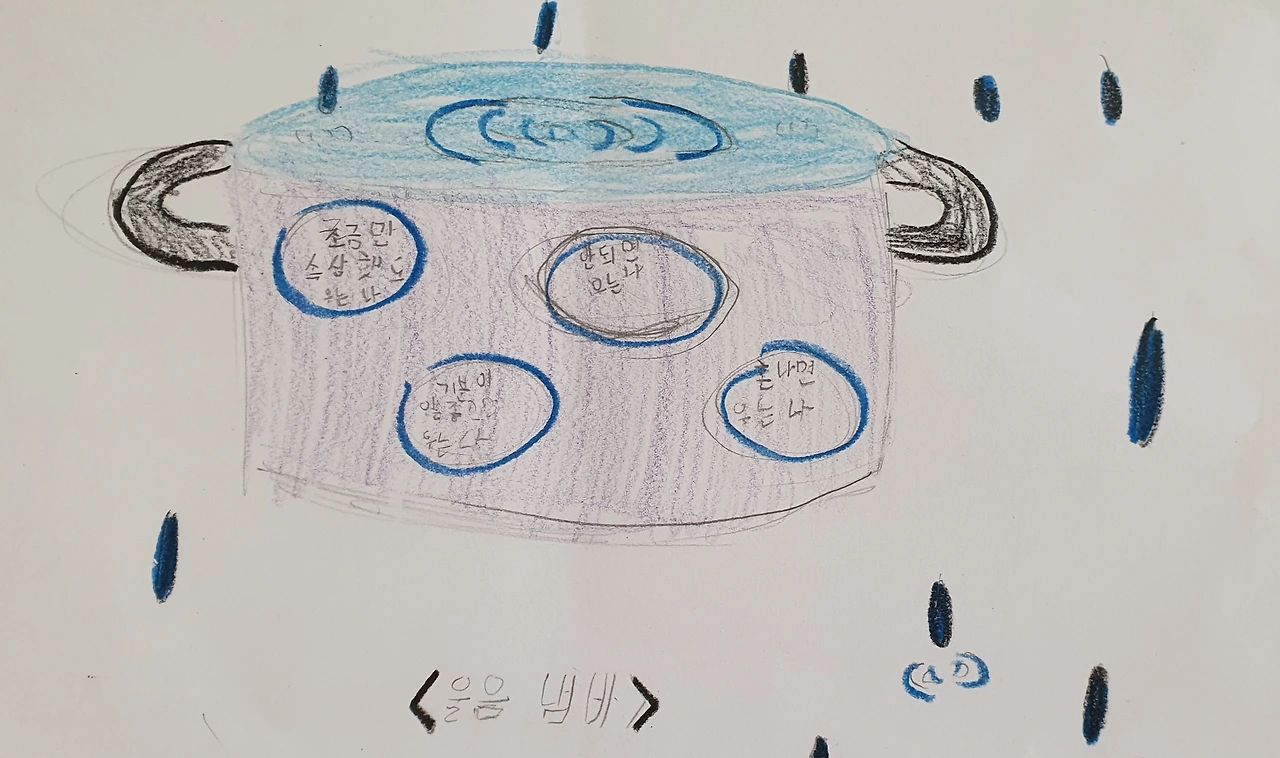 "선생님이 이 책을 읽었는데 아나톨이 가진 냄비처럼 선생님도 '삐짐 냄비'를 가지고 있더라고요. 열심히 집안일했는데 안 알아주면 삐지고, 조금만 안 챙겨주면 삐지고, 내 생각과 다르면 삐지고, 배고플 때 잘 삐지고, 등등등 이렇게 잘 삐져요."