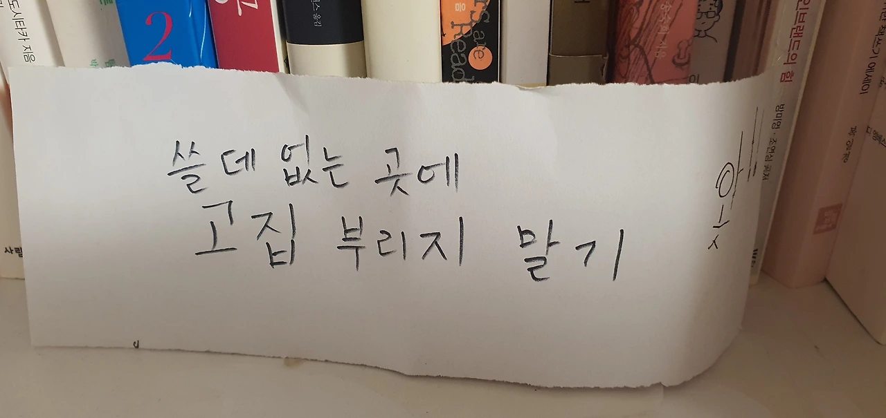 적기만 했는데 속이 시원했다. 그리곤 적은 종이 세 개를 제일 잘 보이는 책장 앞에 놓아두었다. 매일 보면서 세 가지 행동은 하지 않겠다고 마음속 다짐을 했다.