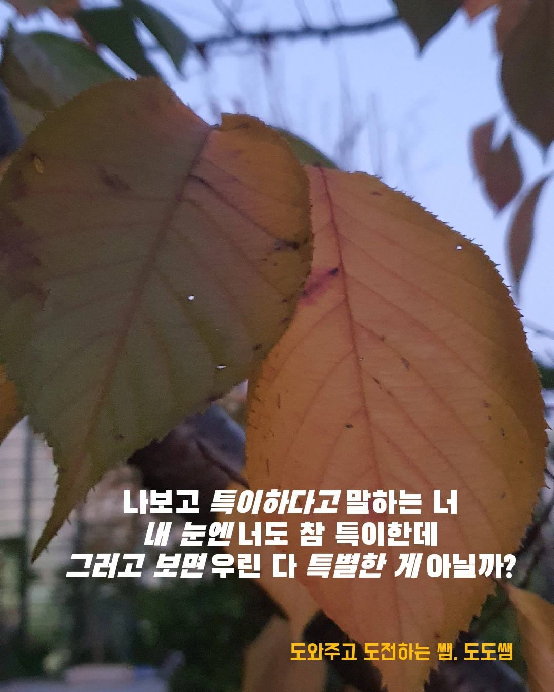 도전하고 도와주는 선생님, 도도쌤입니다. 매일 실수를 통해 배웁니다. 따뜻한 마음을 글로 담고 싶습니다.
