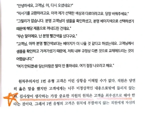 그냥 고객은 왕이니 무조건 잘해라가 아니라, 완벽주의 1번 유형의 고객에게는 쓴소리도 경청하는 자세를 가지고, 2번 유형의 고객에게는 고객의 기분을 맞추고, 각각의 유형별 사람에게 각각의 세세한 팁들을 이 책은 전달하고 있다.