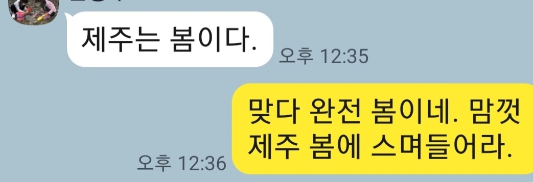 대학교 친구 녀석이 가족여행으로 제주를 가서 하는 말에 나도 모르게 제주의 봄을 잔뜩 그리워하게 된다.