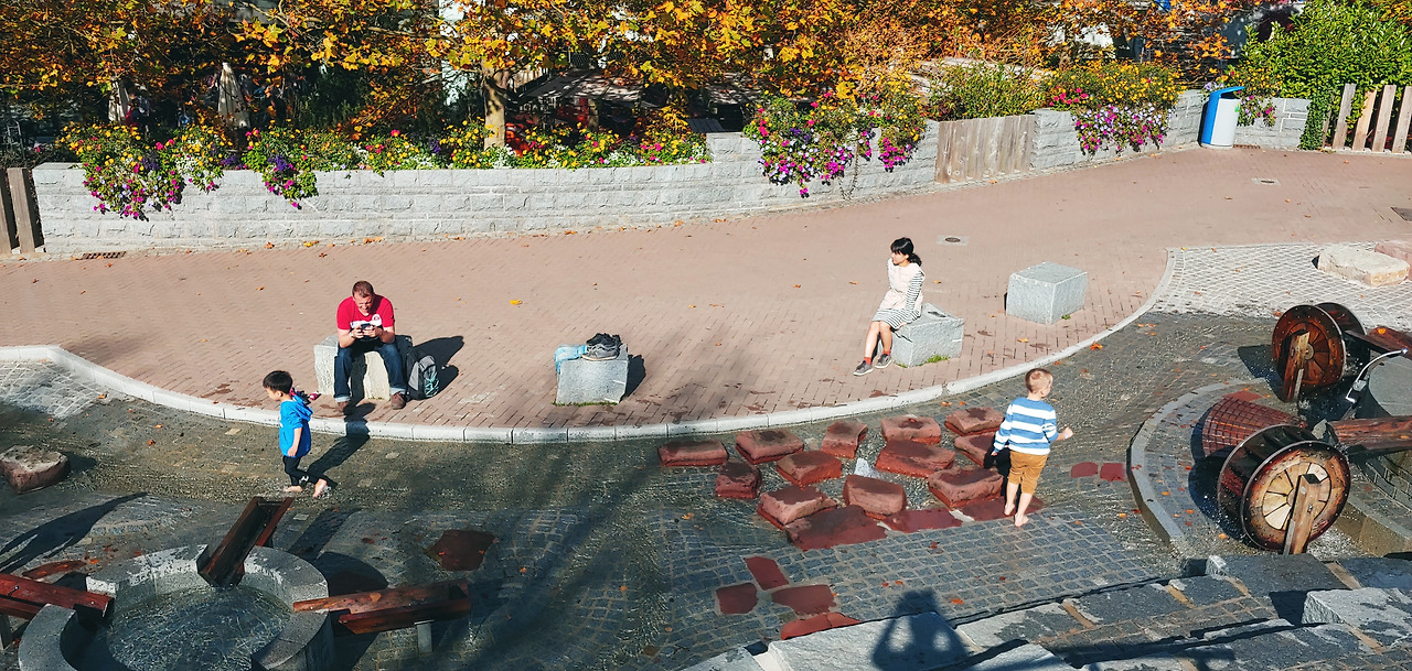 단풍이 들고 낙엽이 떨어지기 시작하는 쌀쌀한 가을 하늘 아래 펀파크 입구에는 키가 큰 안내원들이 서서 간단한 짐 검사를 하고 안으로 들여보내 주었다. 펀파크에서 가장 좋은 것은 줄 설 필요가 없다는 것. 신나고 스릴 있는 탈것은 하나도 없지만, 배,성, 농장, 동물원, 배를 띄우며 노는 곳, 클라이밍을 하는 곳 등 다양하게 꾸며진 곳에서 아이는 돌아다니며 다른 아이들 틈에서 탐색하고 놀았다.