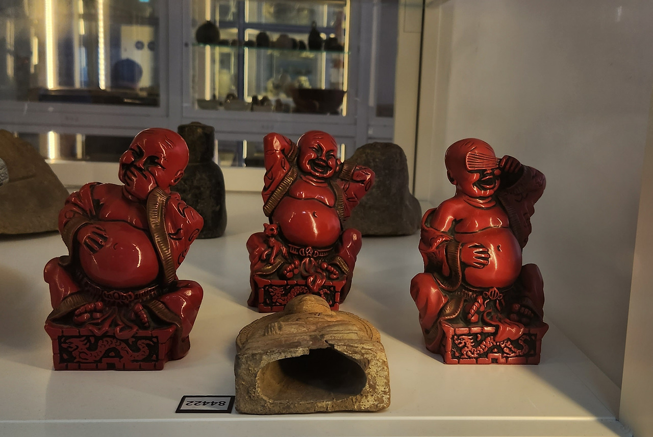 보기만 해도 웃음이 나는 포대화상. 입 막고, 귀 막고, 눈 가리고 살라는 잠언을 익살스럽게도 표현하여 유쾌하다.