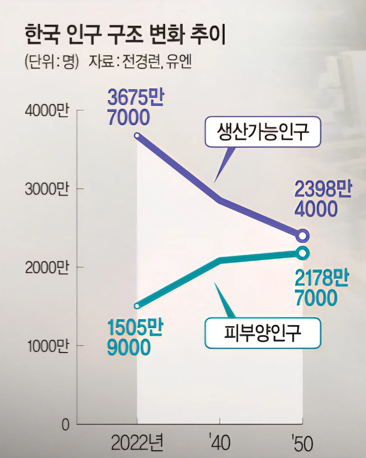 생산인구 감소로 인해 필연적으로 벌어지게 되는 모두의 사회적 부담 증가와 저성장(또는 마이너스 성장)...