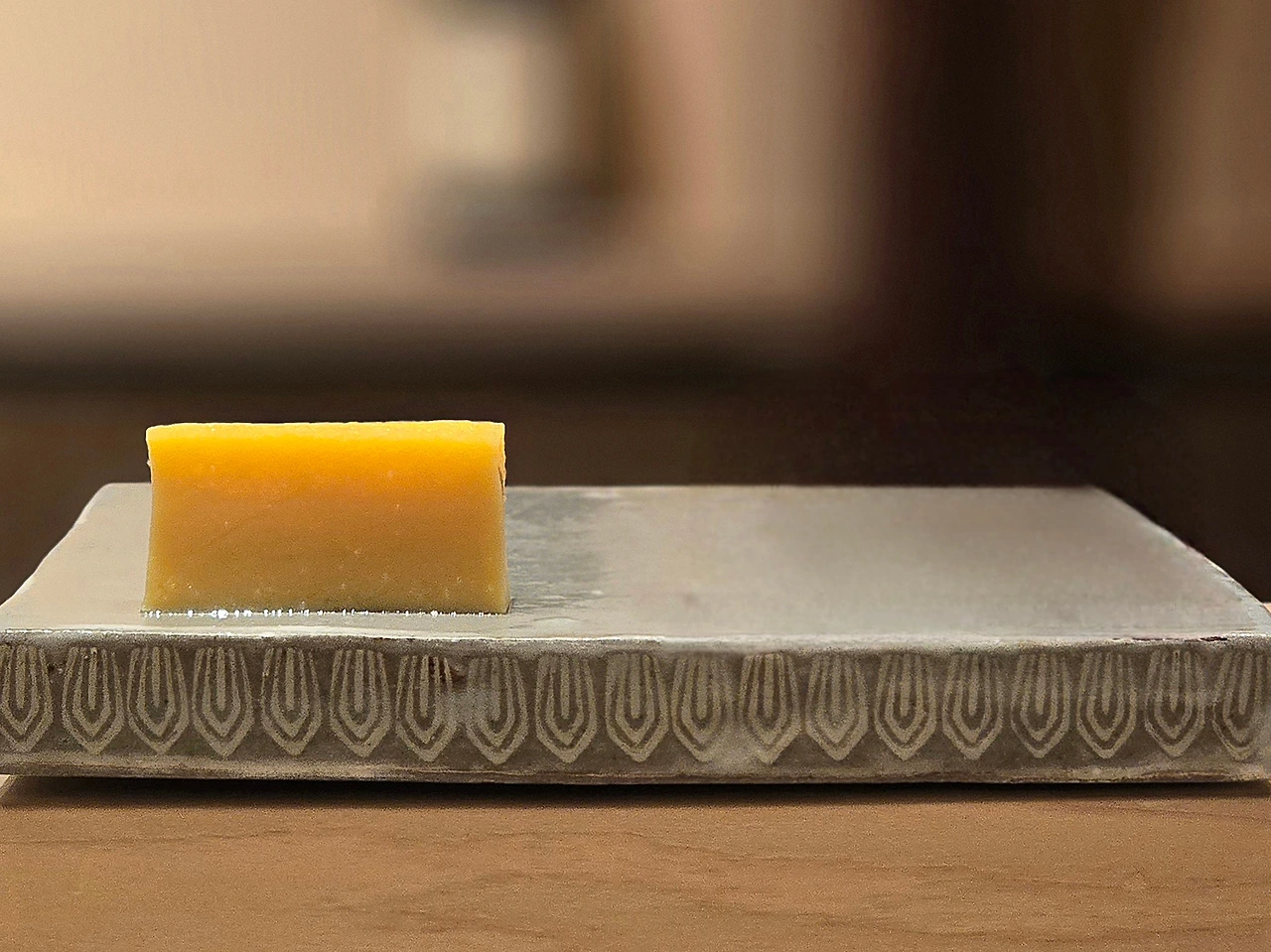 대게살의 바다 내음에 앙가케*의 걸쭉한 온기가 더해진, 잔잔한 휴식 같은 수프. 곁들인 토란튀김의 땅 내음과 끈적한 바삭함은 대게수프와 대비를 이루고, 살포시 얹은 대게 내장과 청귤은 잔재미를 더한다. 점도가 상당히 높은 편이여서, 숟가락 대신 젓가락으로 면처럼 집어 먹는 것도 괜찮다.
