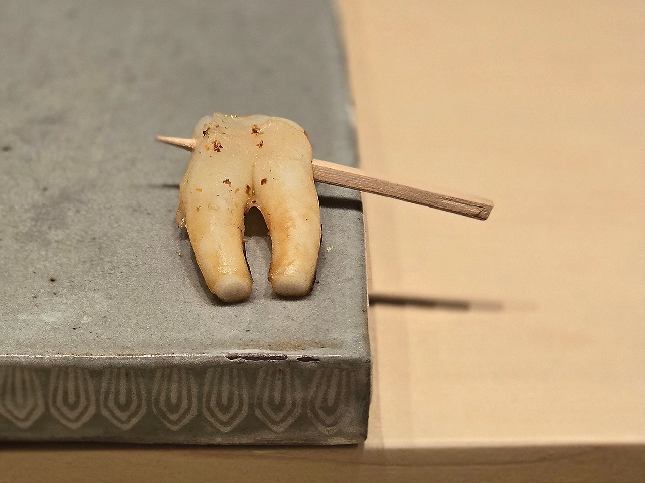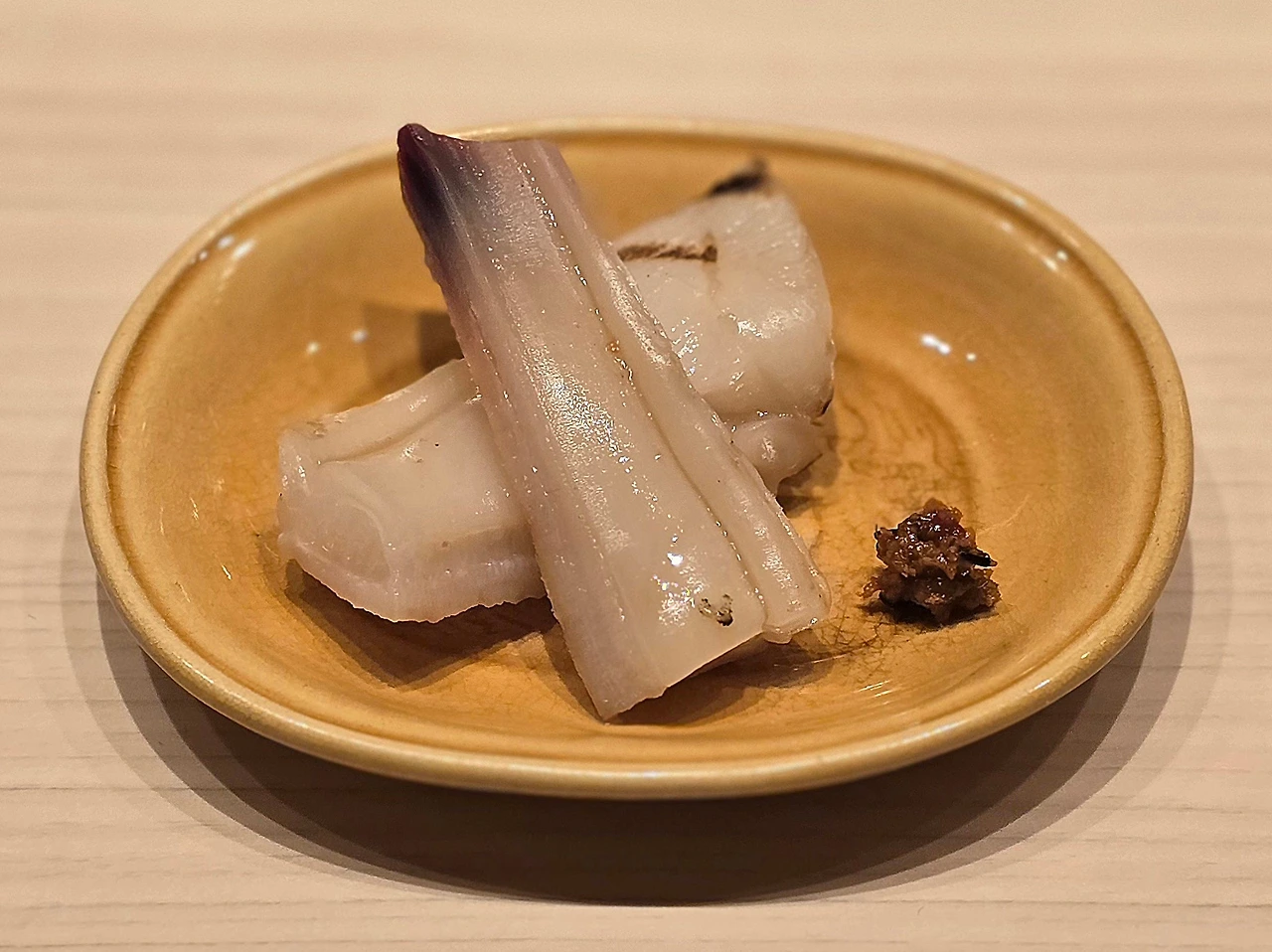 제목은 니타코지만, 타코와 무가 주인공 자리를 두고 겨루는 요리. 타코는 적당한 탄력에 자연스럽게 스며든 달큰한 소스로 제 몫을 다한다. 그런데 의외로 평범해 보이는 무 한 조각이 발군이다. 투명할 정도로 얇디 얇은 튀김옷을 파사삭 깨물면, 촉촉한 무 속살이 뭉그러지며 맑고 깊은 단맛과 고소한 감칠맛을 뿜어낸다. 어찌나 깔끔한지. 잡내도, 잡맛도 전혀 없다.