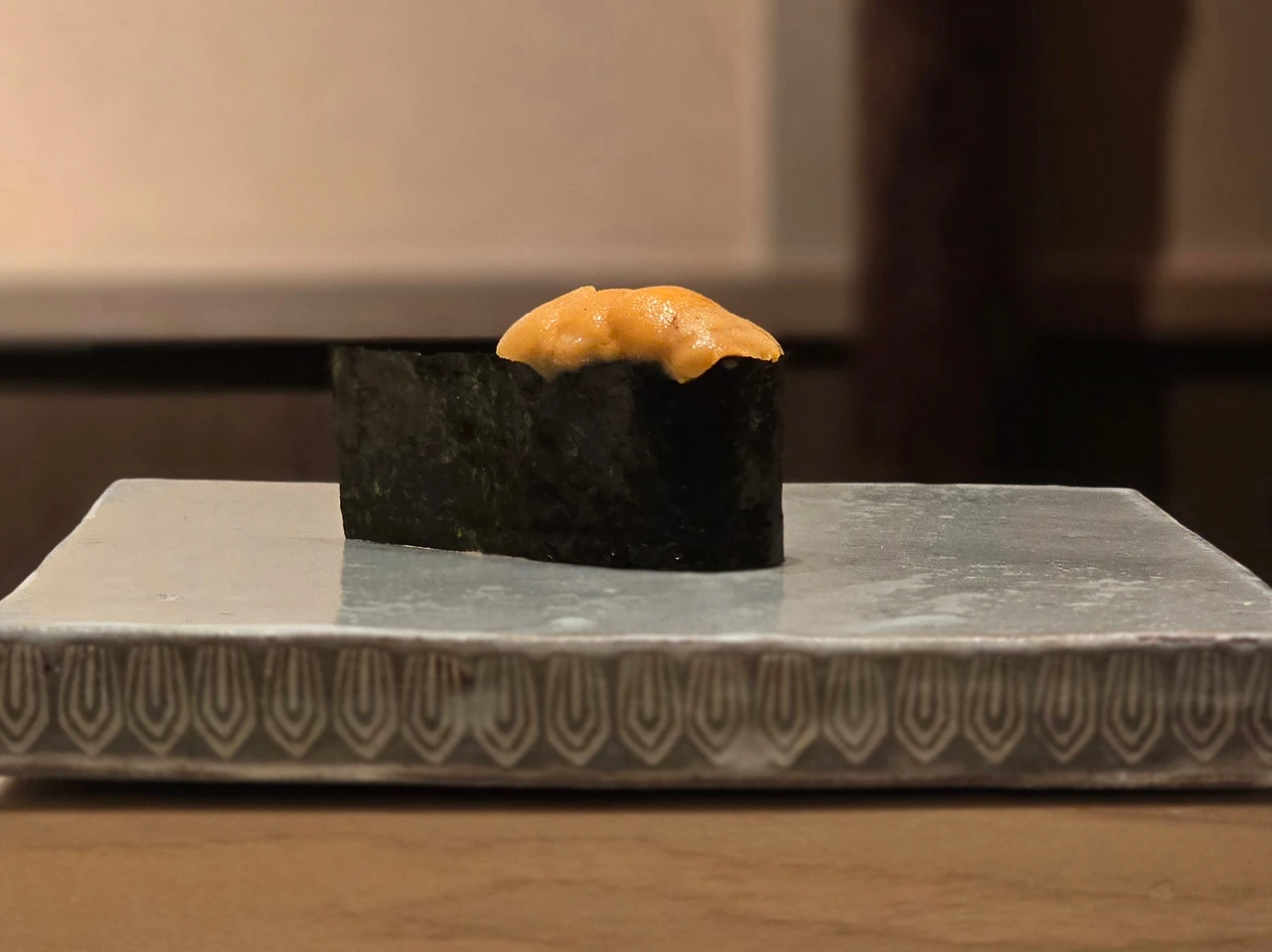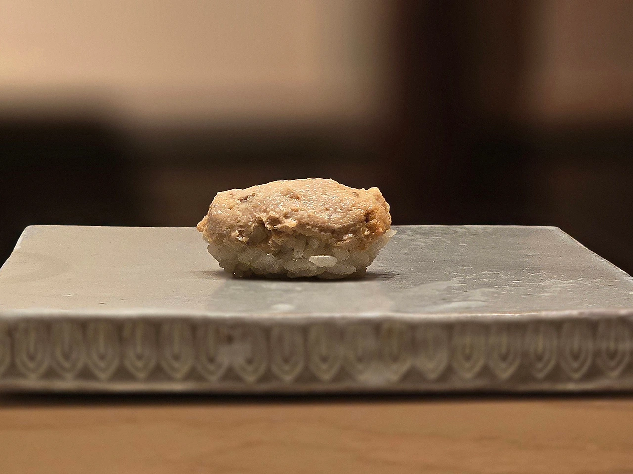새콤한 모즈쿠 위에 두 번 튀겨낸 아나고강정. 니기리즈시 시작 전 입가심 용도로 먹는 클렌저일 뿐인데도, 여기에서조차 잔재미를 놓치지 않았다. 새콤한 청량감과 고소한 기름기, 시원함과 따뜻함, 미끄러움과 바삭함이 유쾌하게 충돌한다.