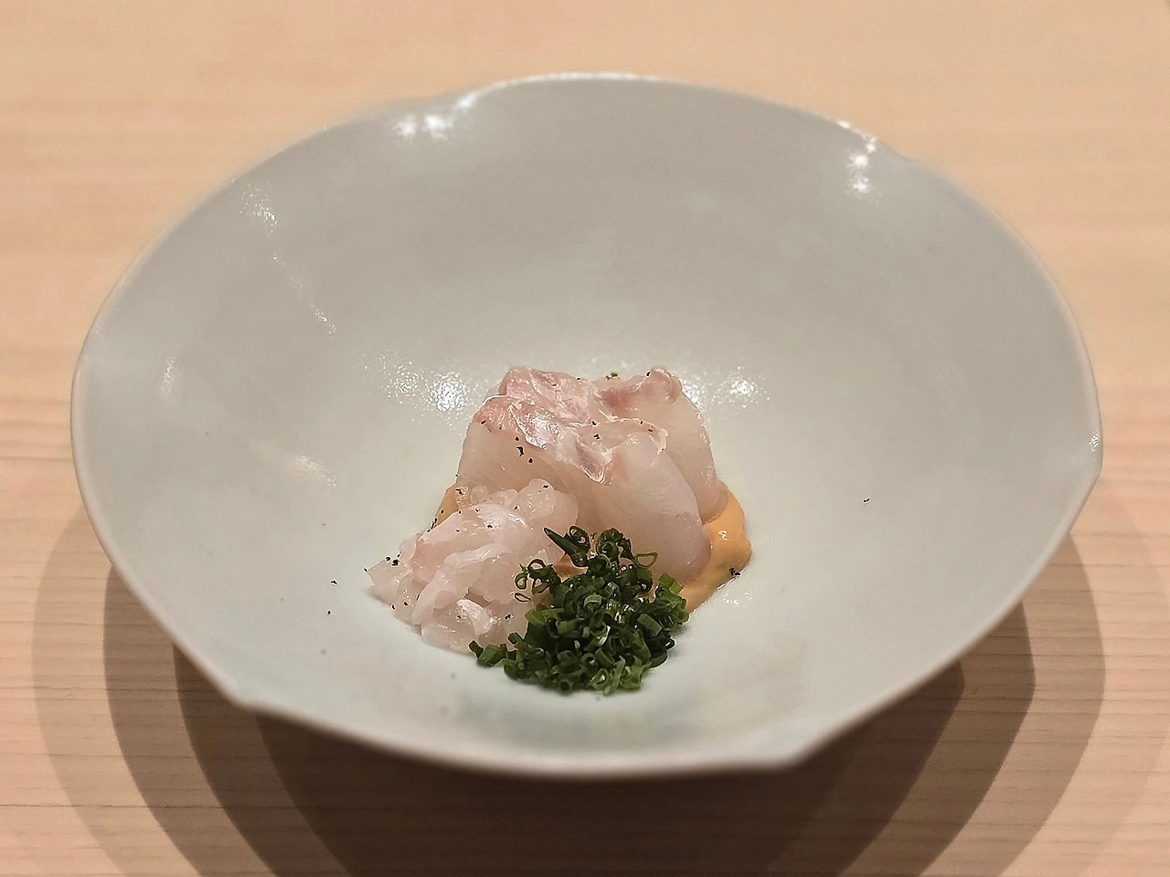 찰랑찰랑 보드라운 차완무시. 3~6월 사이에 물이 오르는 금태의 기름진 단맛과 김의 감칠맛이 녹아들어, 첫 입부터 깊고 그윽하다. 한 템포 쉬어가듯 입맛을 정리해주면서도, 동시에 은은한 여운을 남긴다.