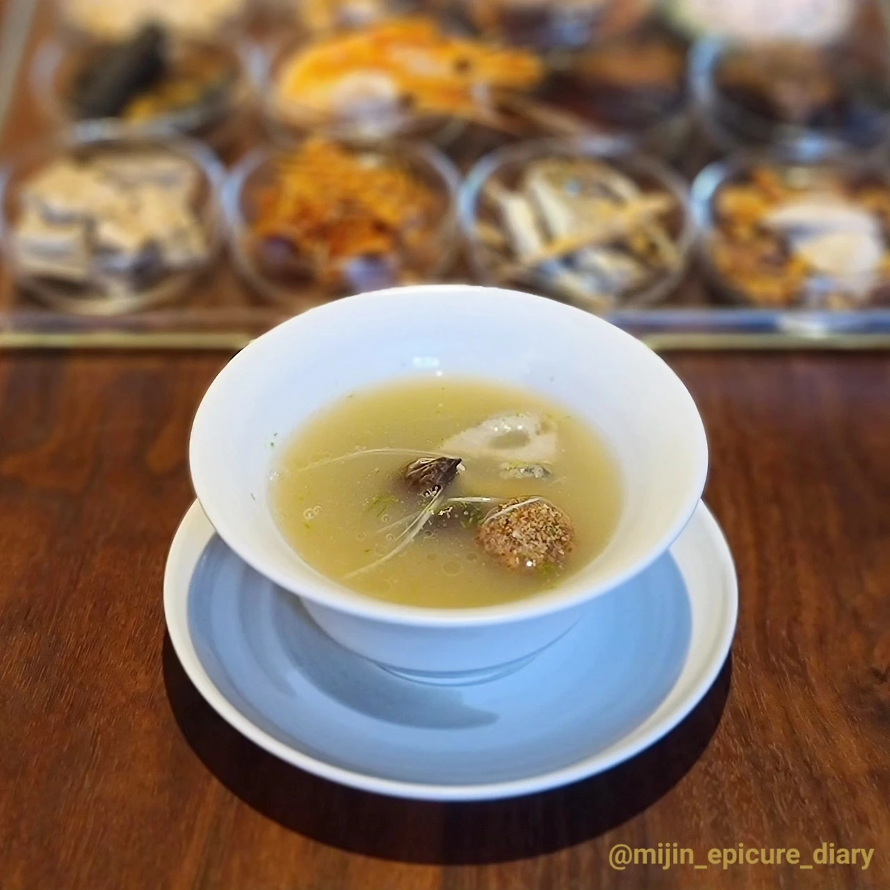 "식문화를 넘어 한국 문화를 전반적으로 경험하는 시공간을 만들고 싶다"라는 강민구 셰프의 바람대로, 요리를 비롯해 한국의 미를 현대적으로 해석한 공간, 젊은 한국 공예 작가들의 작품들, 차분하면서 정성스러운 접객까지 하나로 관통하는 유려하고 그윽한 흐름이 있다.