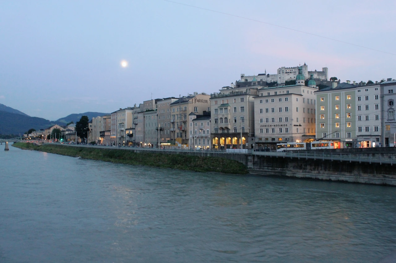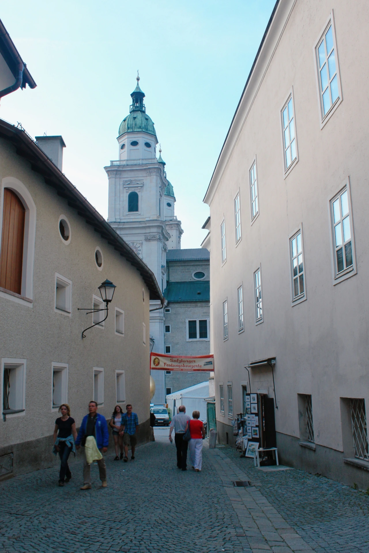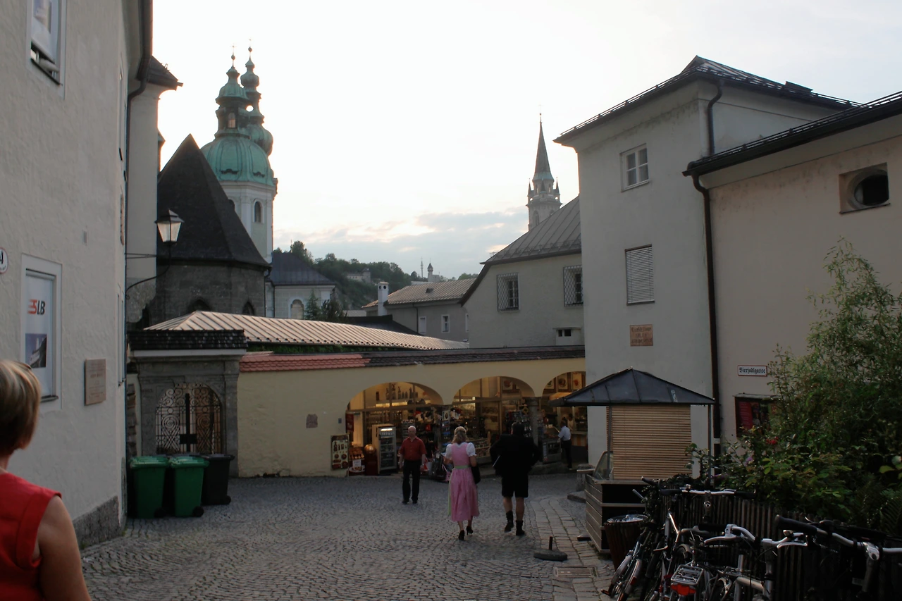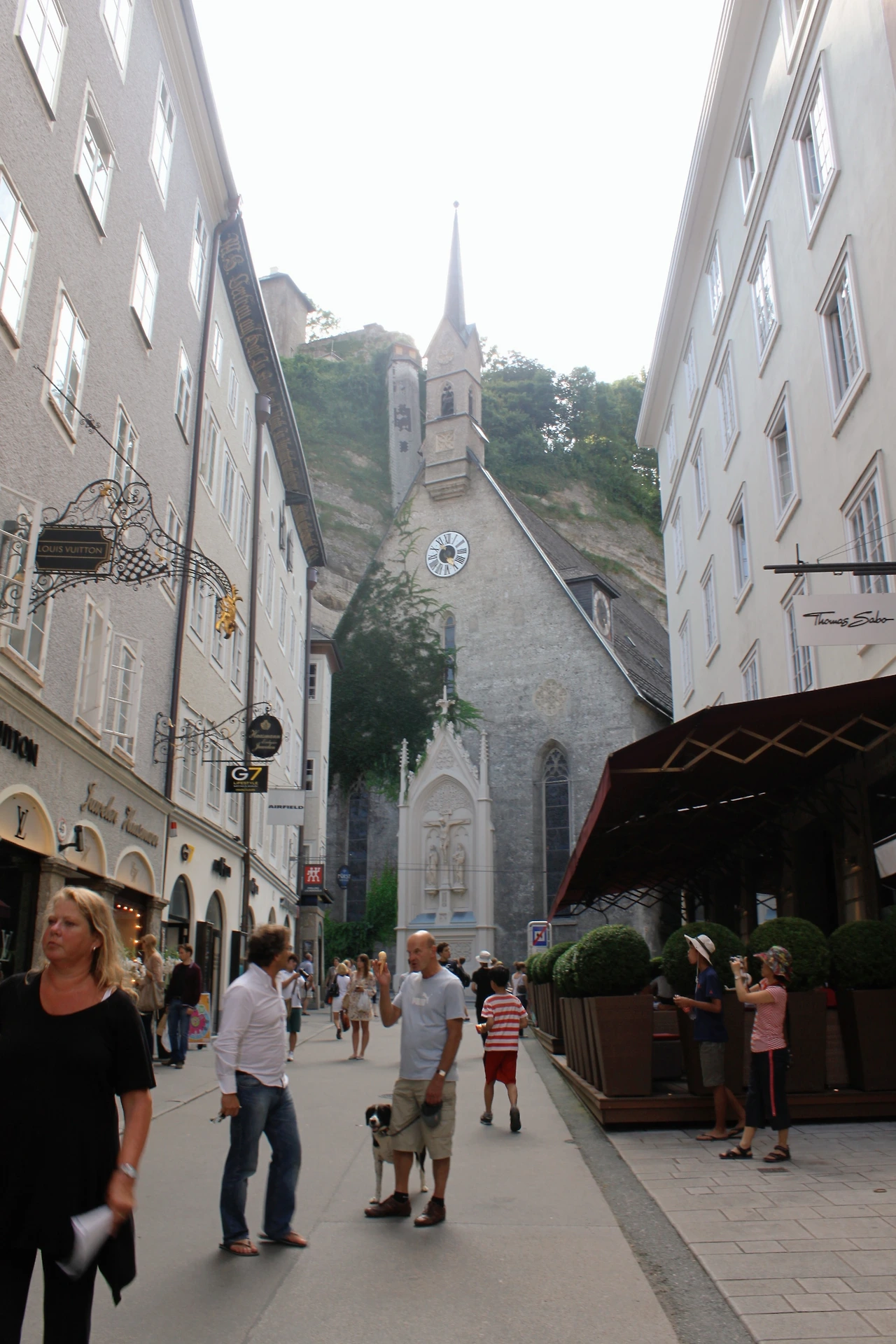 아까는 건너지 못했던 다리를 한가로이 건너본다. 새로운 세상이 펼쳐졌다. '게트라이데 거리(Getreidegasse)'에 있는 좁다란 골목 따라 아기자기하게 밀집된 상점들이 귀여웠다.