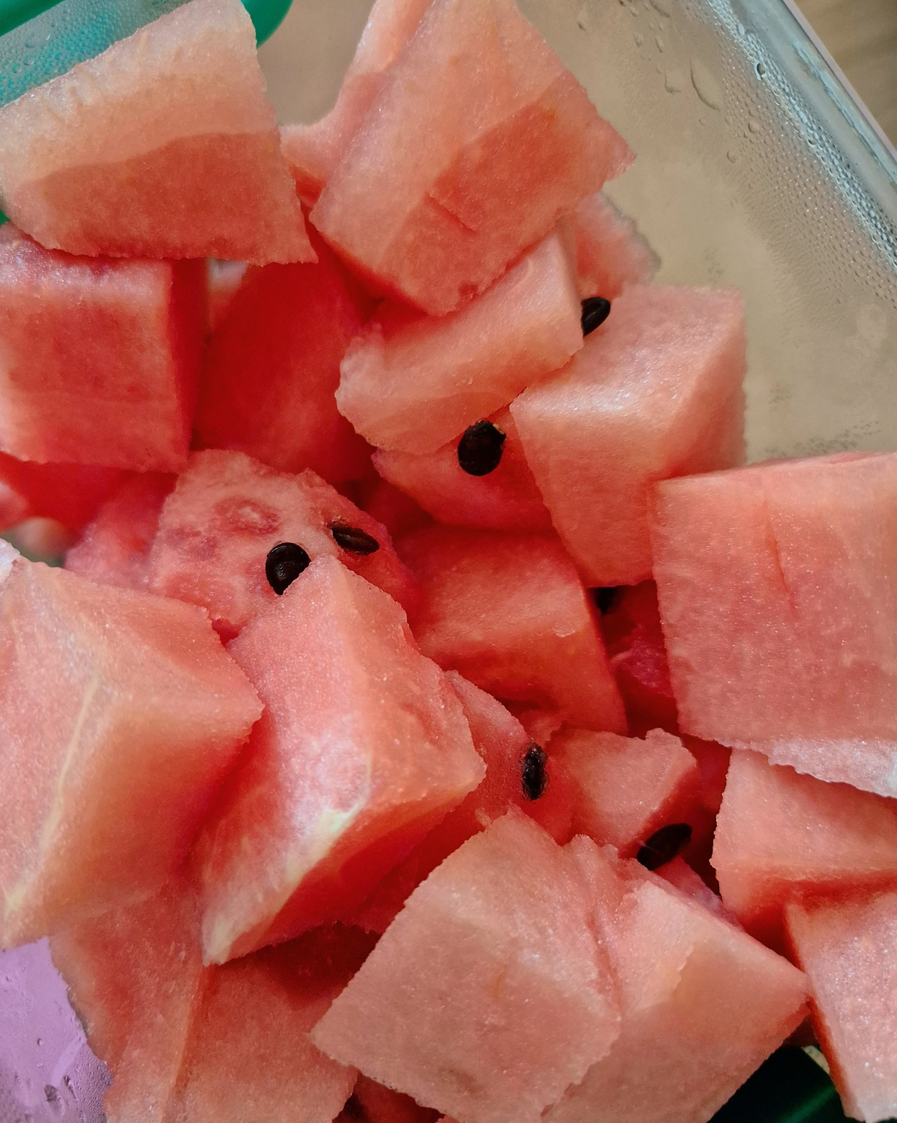 집에 오자마자 바로 수박을 깍둑썰기해서 통에 담아 냉장고에 시원하게 넣어뒀다. 잠시 쉬고 있을 때 학교에서 돌아온 딸아이가 현관문을 열자마자 말했다.