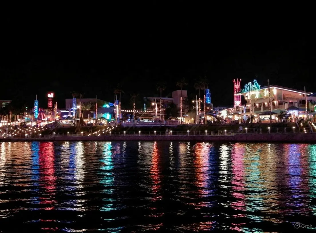 안으로 들어가 호수를 중심으로 천천히 걸었다. 네온사인이 밤하늘을 수놓고 있었고, 레스토랑과 바, 상점들이 화려한 불빛으로 사람들을 불러 모았다.