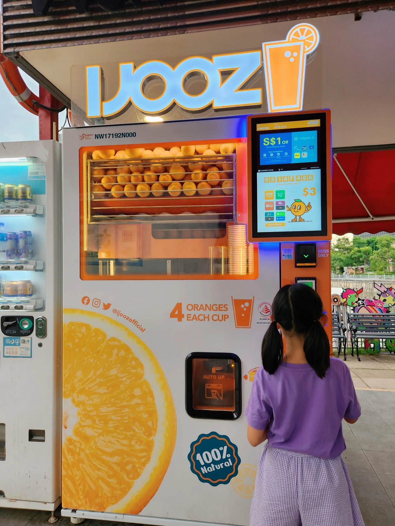 생과일 오렌지를 직접 착즙 해서 파는 'IJOOZ' 자판기였다. 하루에 한 번씩 꼭 마시라고 할 정도로 칭찬일색이어서 궁금했는데, 마침 필요한 시점에 딱 만난 것이다.