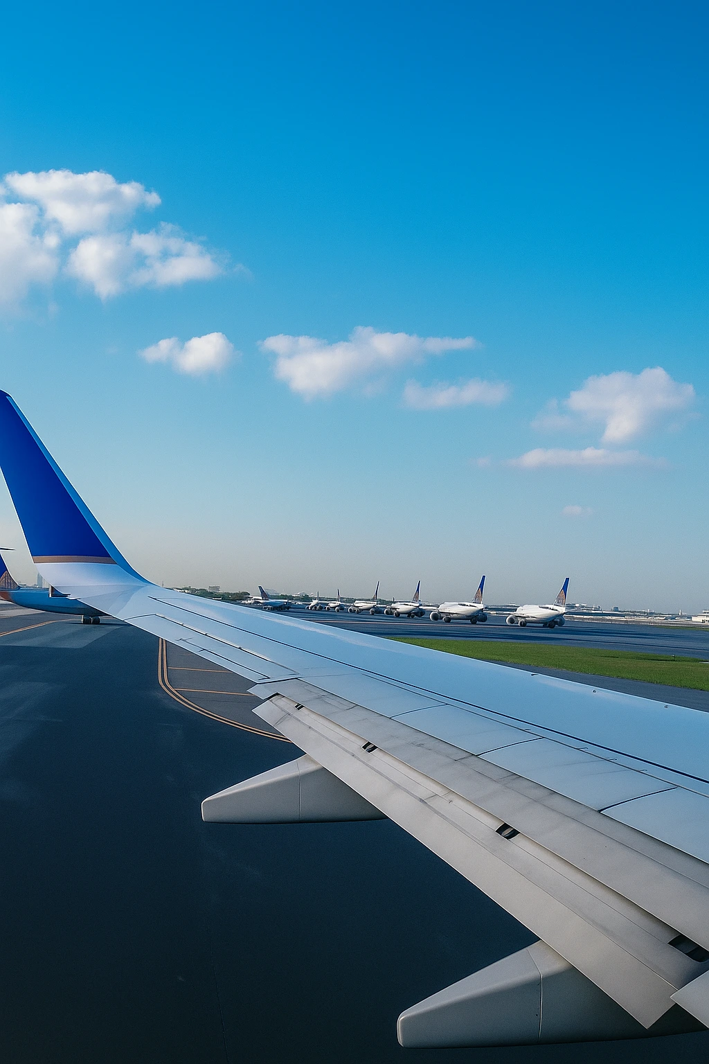 그렇다. 우리가 탄 비행기는 아직도 지상을 떠나지 못하고 있었다. 놀라운 것은 우리 비행기 옆으로 다른 비행기들이 쭉 열 맞춰 줄을 서있었다는 것이다.