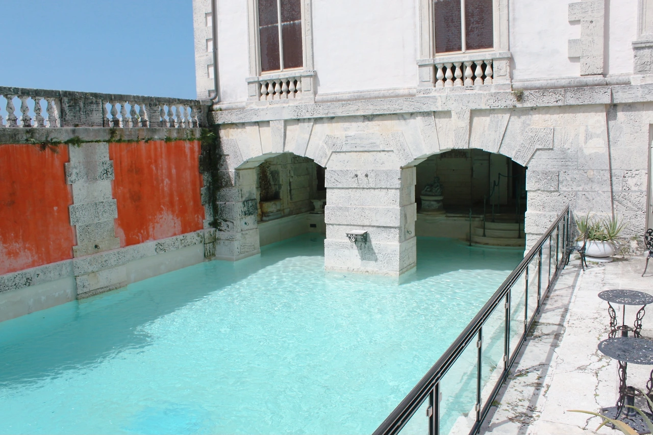 푸르른 나무 사이를 따라 걷다 보니 눈부신 햇살아래 에메랄드 빛 수영장이 모습을 드러냈다. 화창한 하늘빛이 물결 위에 반사되어 영롱하게 반짝였다.