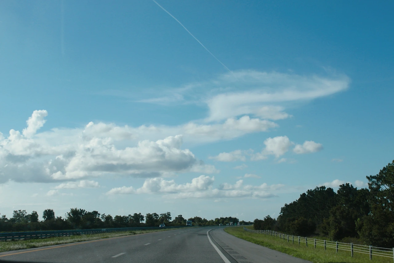 비현실적으로 새파란 하늘 위에는 누군가 일러스트로 그려 놓은 듯 고화질의 구름이 입체적으로 걸려있다. 어쩜 이렇게 아름다 울 수 있을까. 도로 위를 달리는 기분은 그야말로 환상적이다.